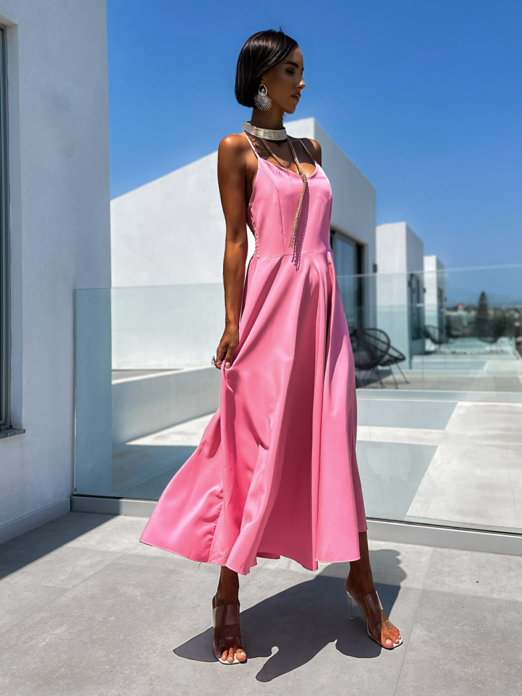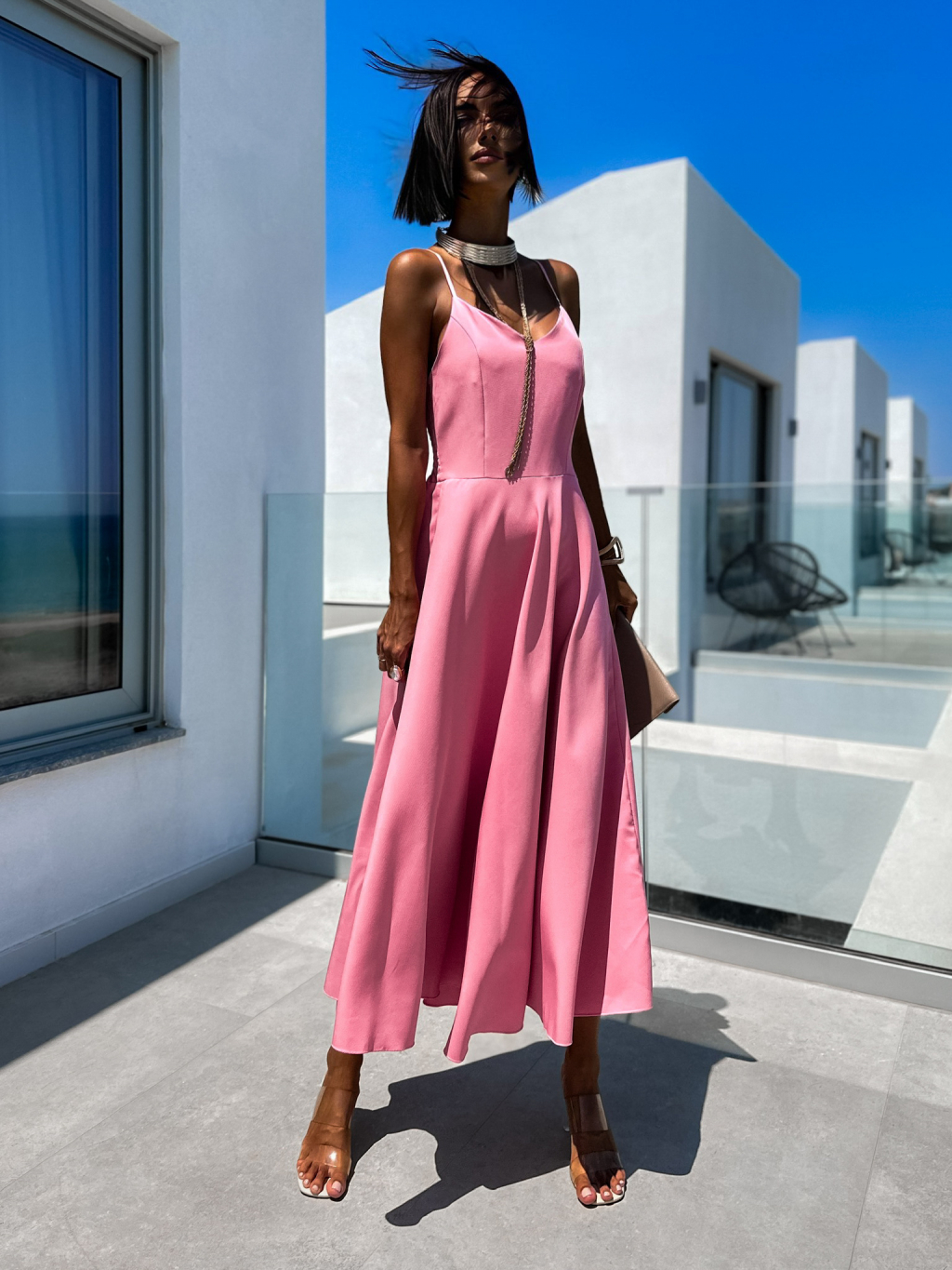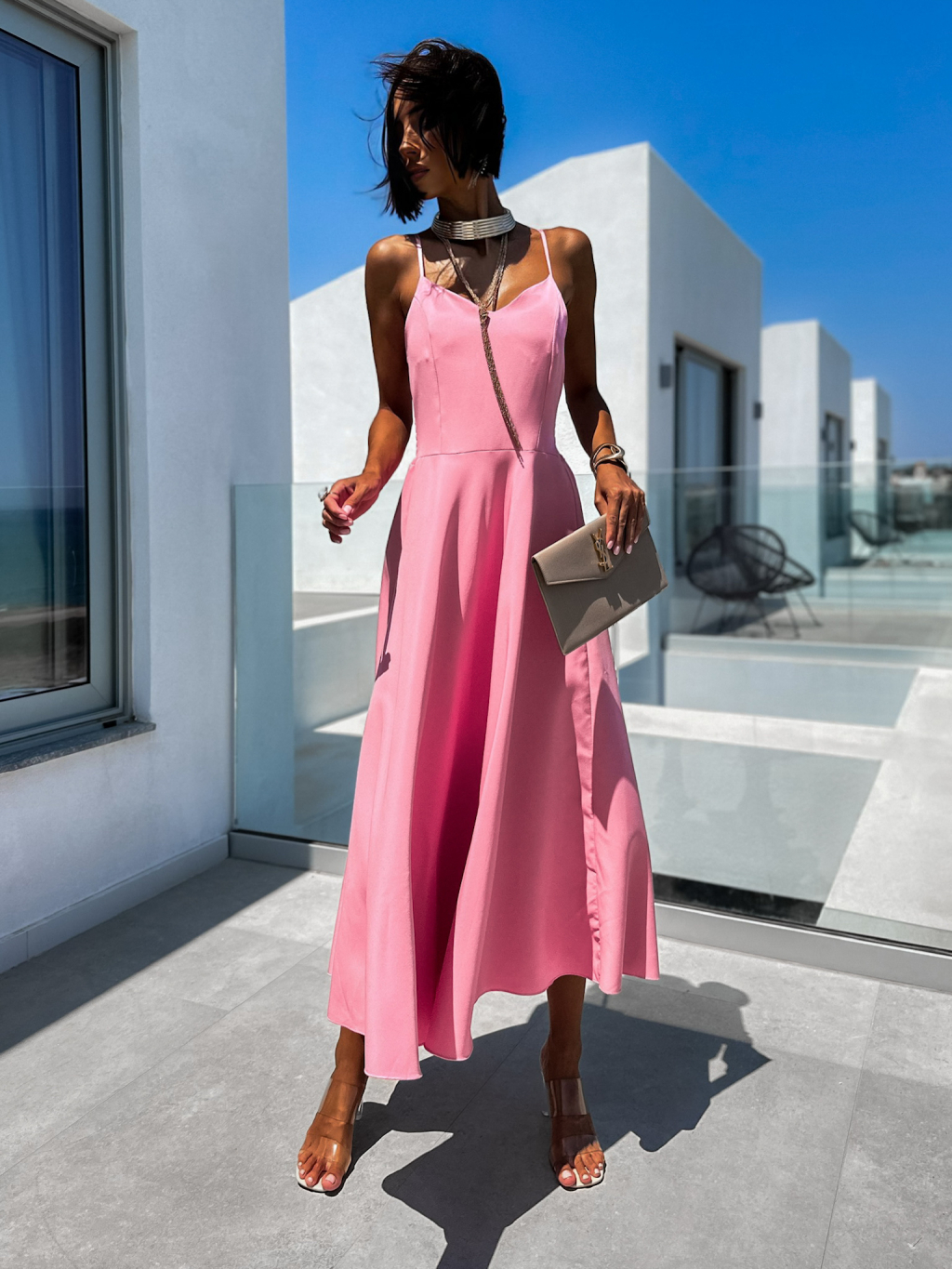 Růžové elegantní dlouhé šaty ZUZALI