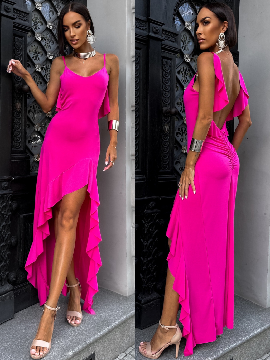Růžové elegantní šaty MUNINE na ramínka