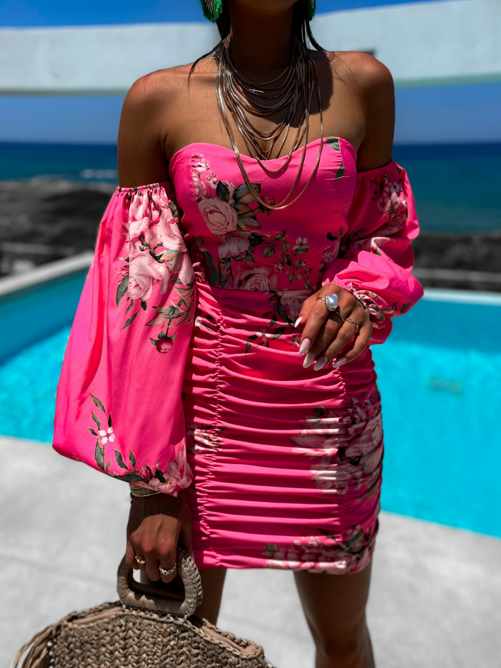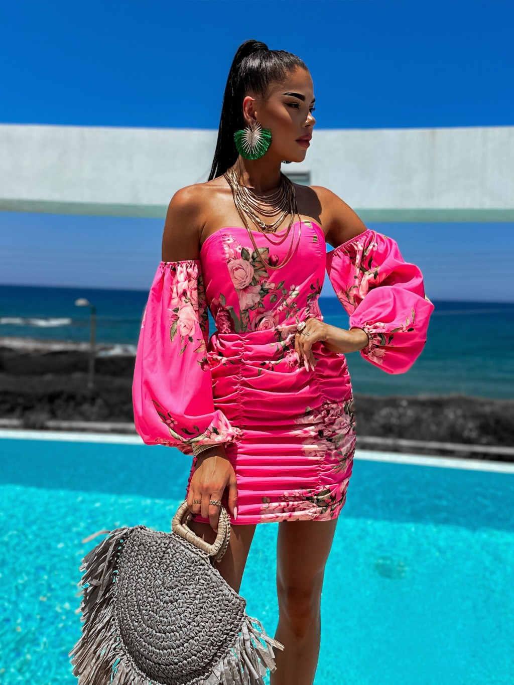 Růžové elegantní šaty RILEY s květinovým vzorem