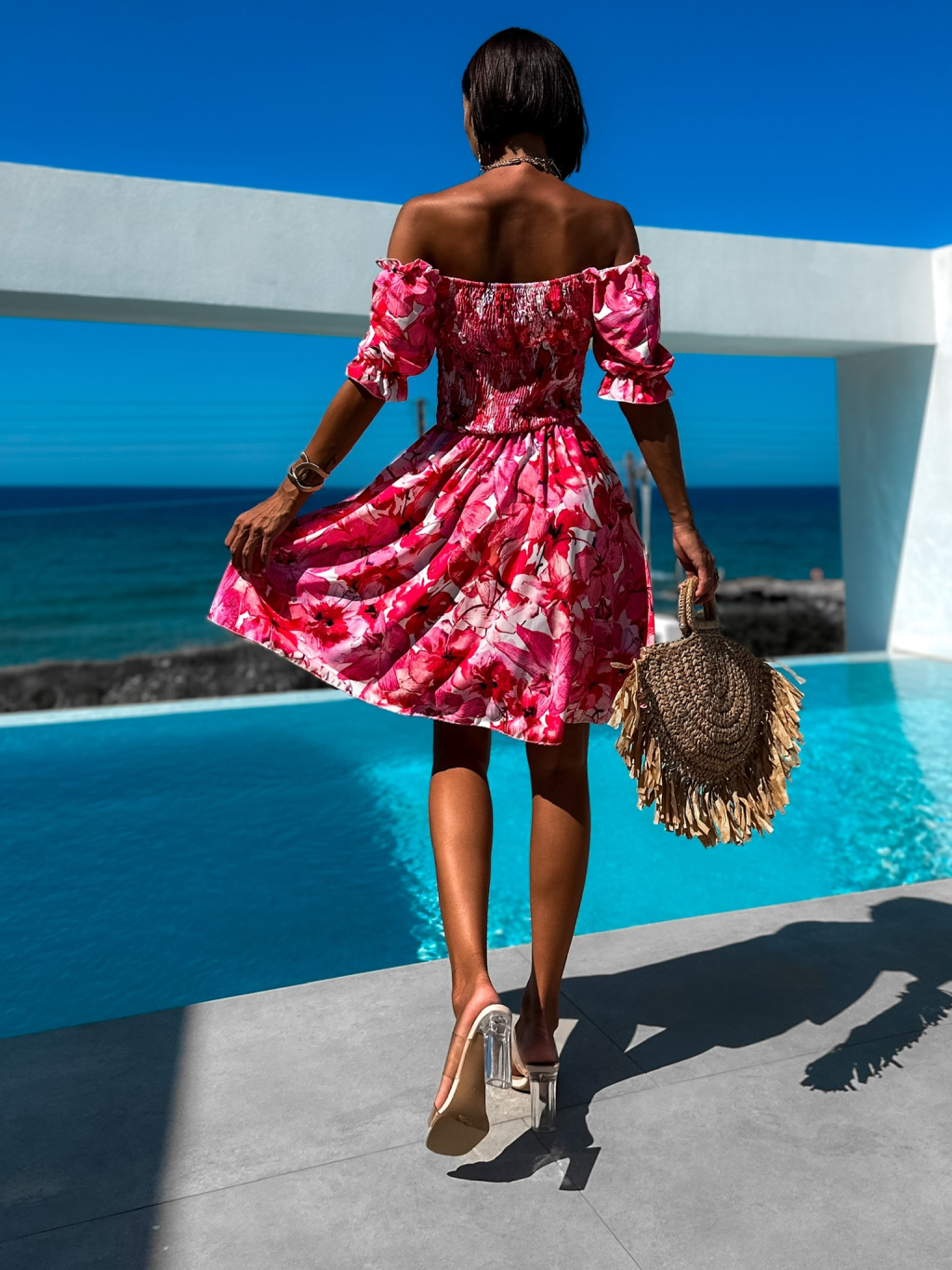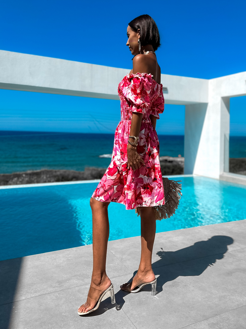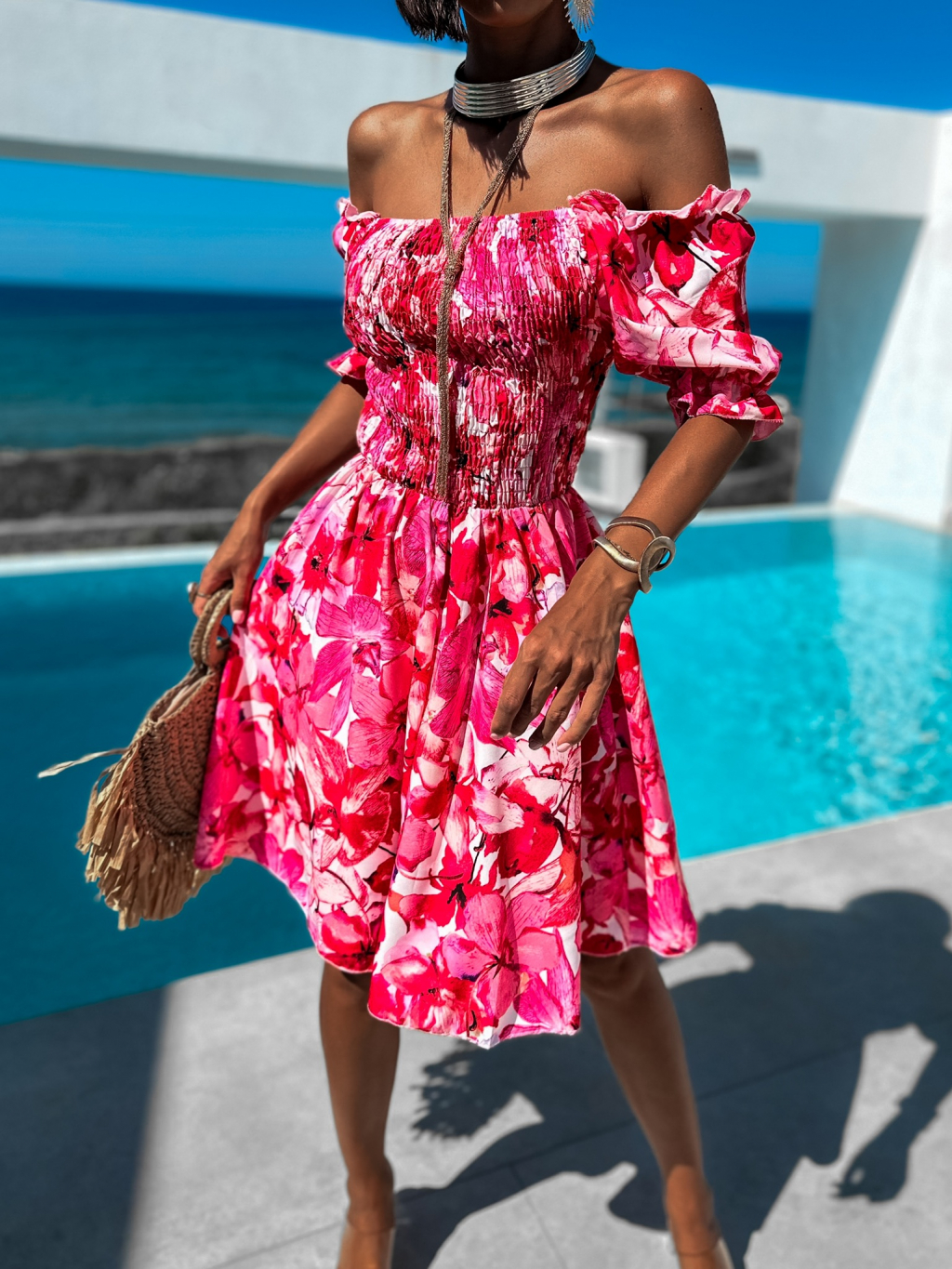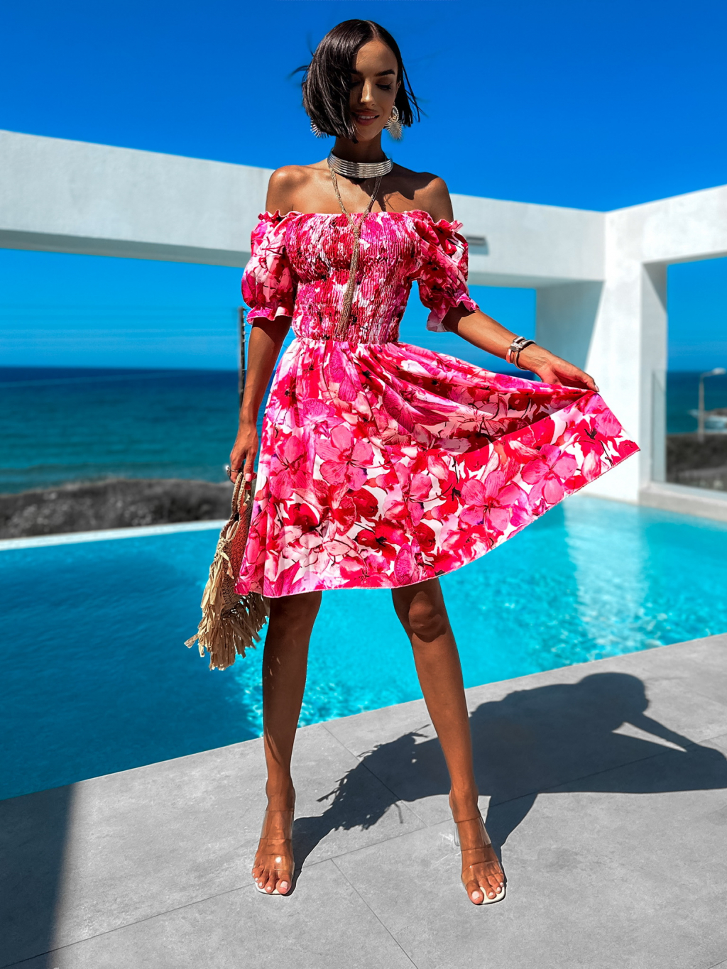 Růžové květinové šaty MELLESA s volánky
