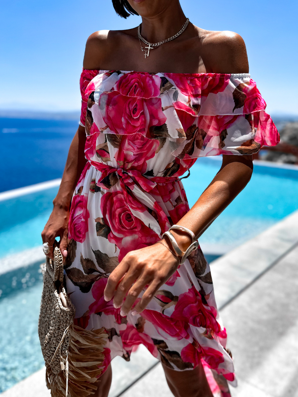 Růžové květinové šaty ROCCO s volánky