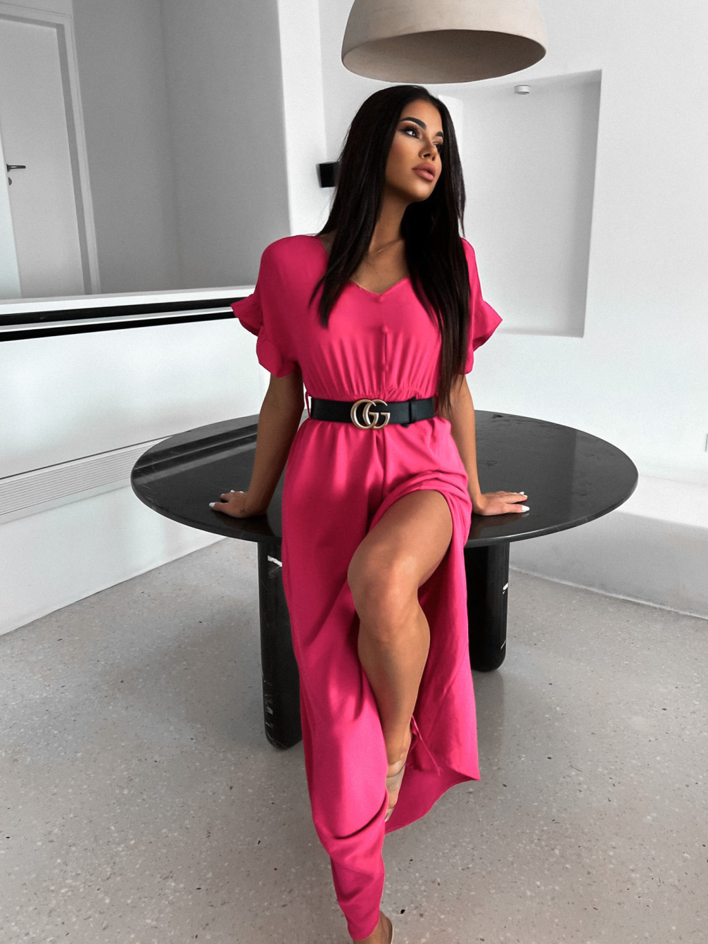 Růžové šaty STROLLY s rozparkem