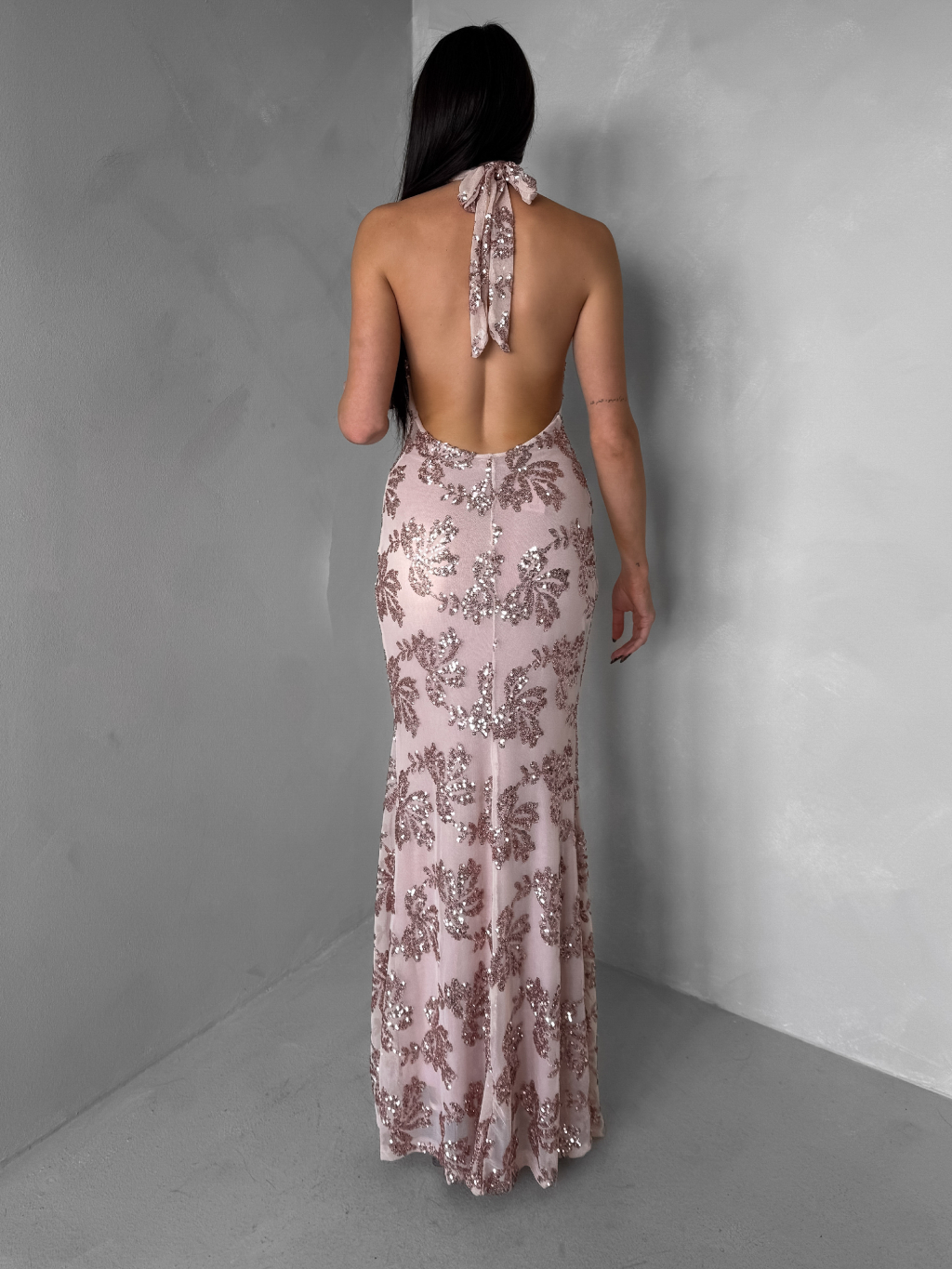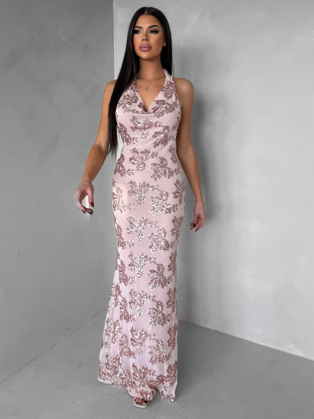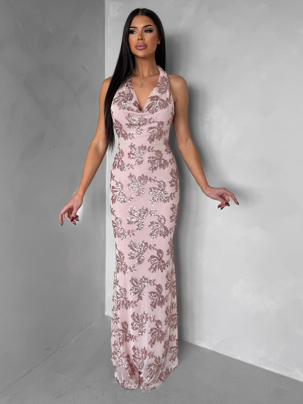 Růžové společenské dlouhé šaty HENTARI s flitry