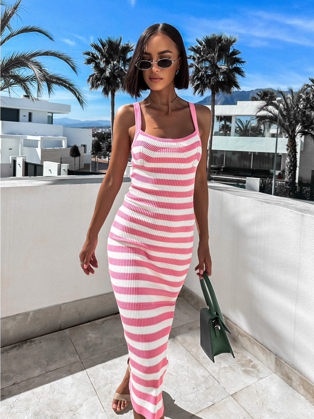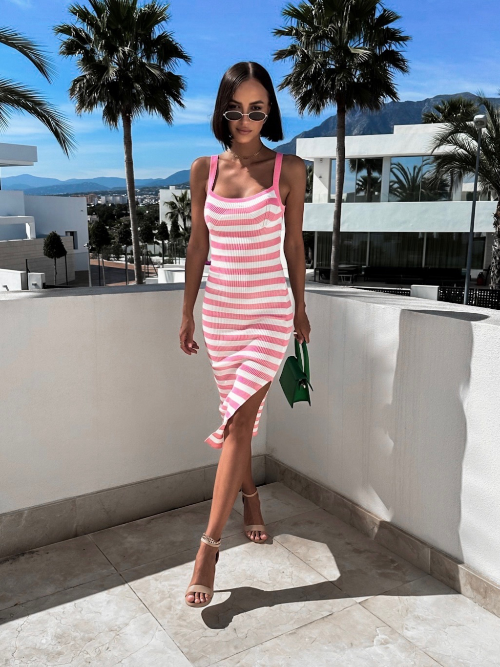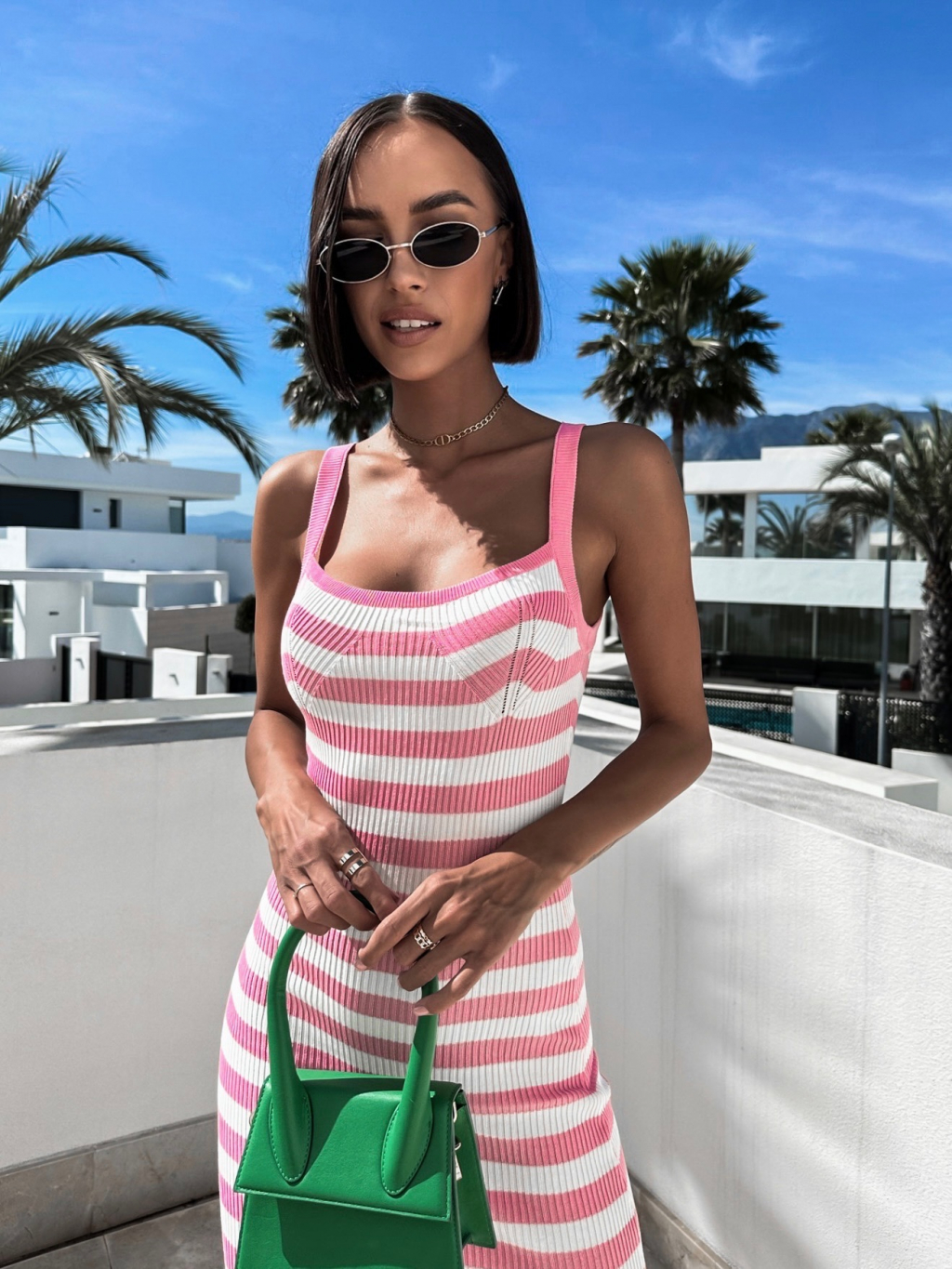 Růžové žebrované šaty JUSTYNETY s pruhy