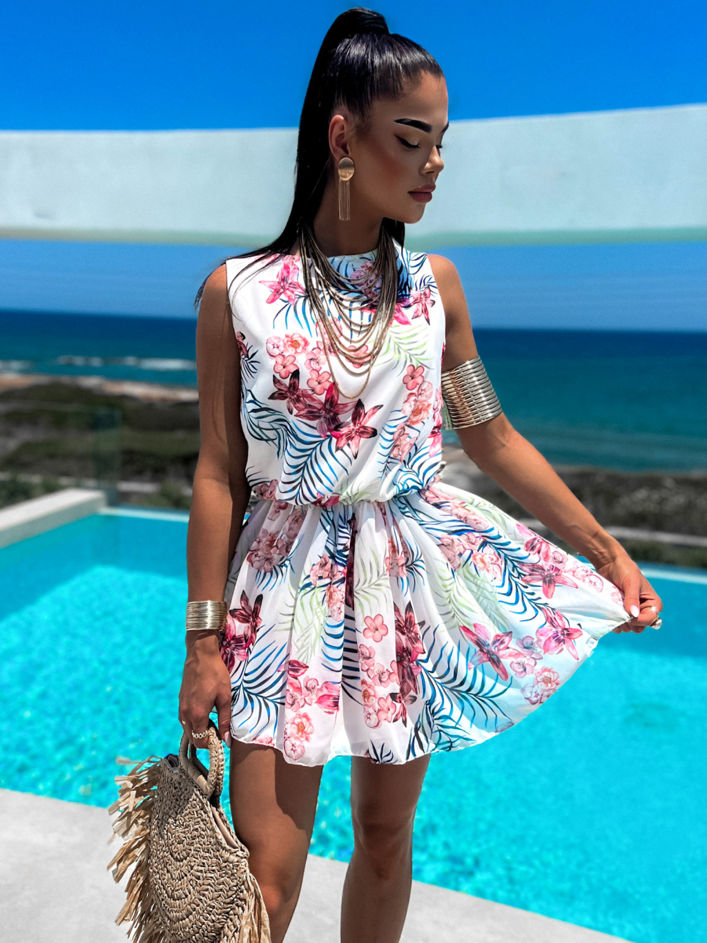 Růžovo bílé elegantní šaty CARLESI se vzory