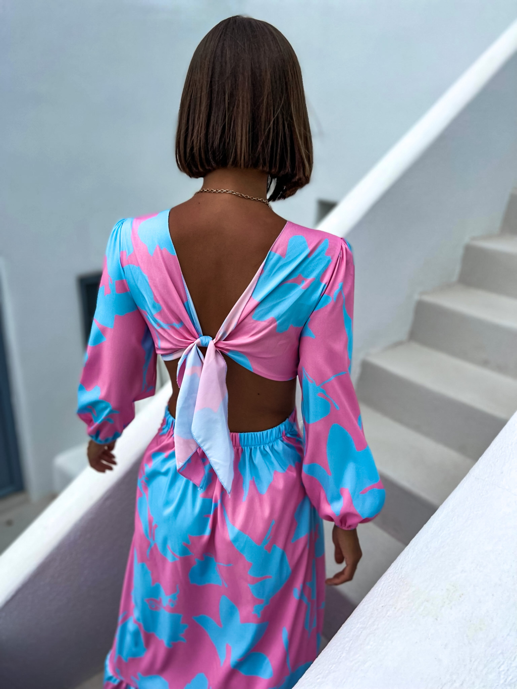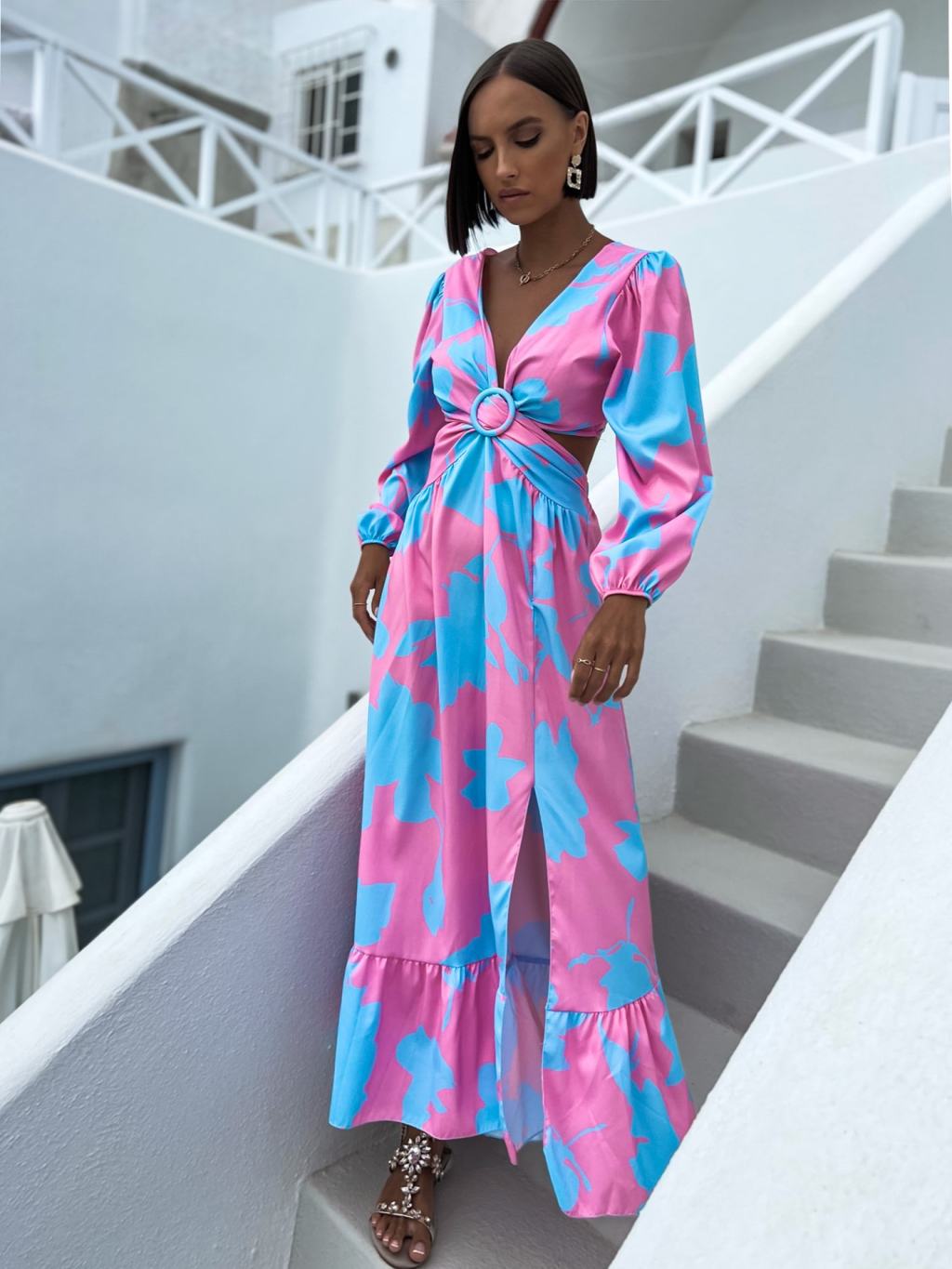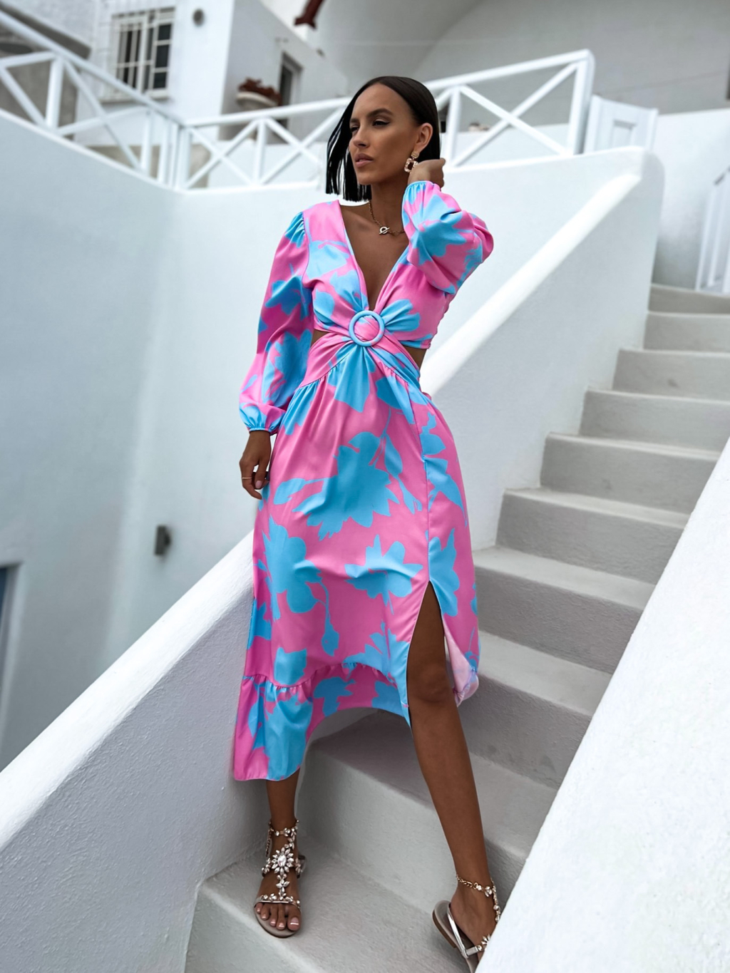 Růžovo modré světlejší elegantní šaty CASSIUS s rozparkem