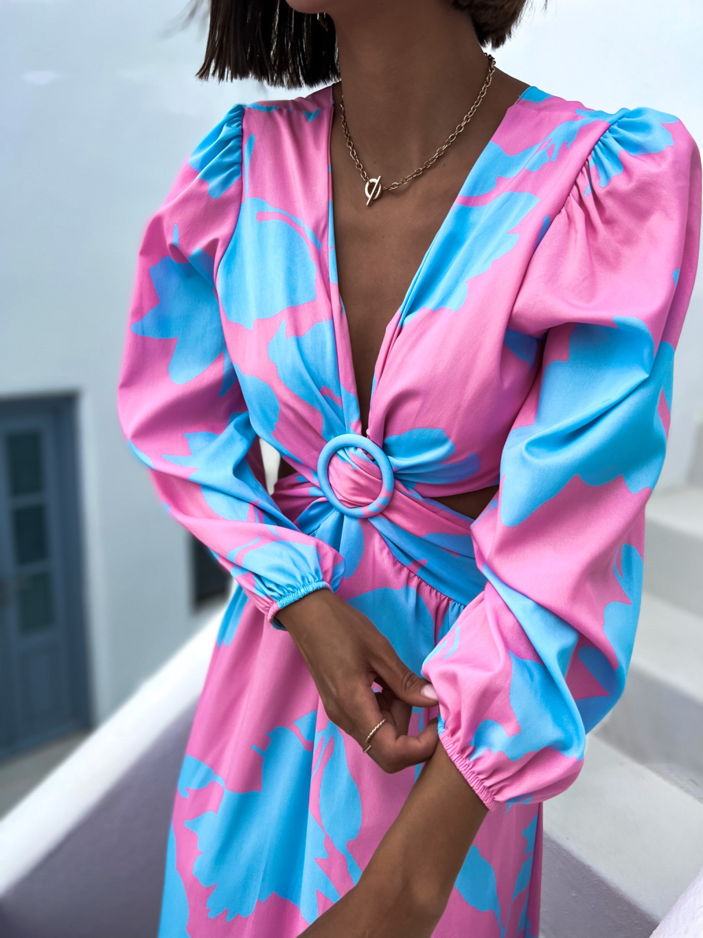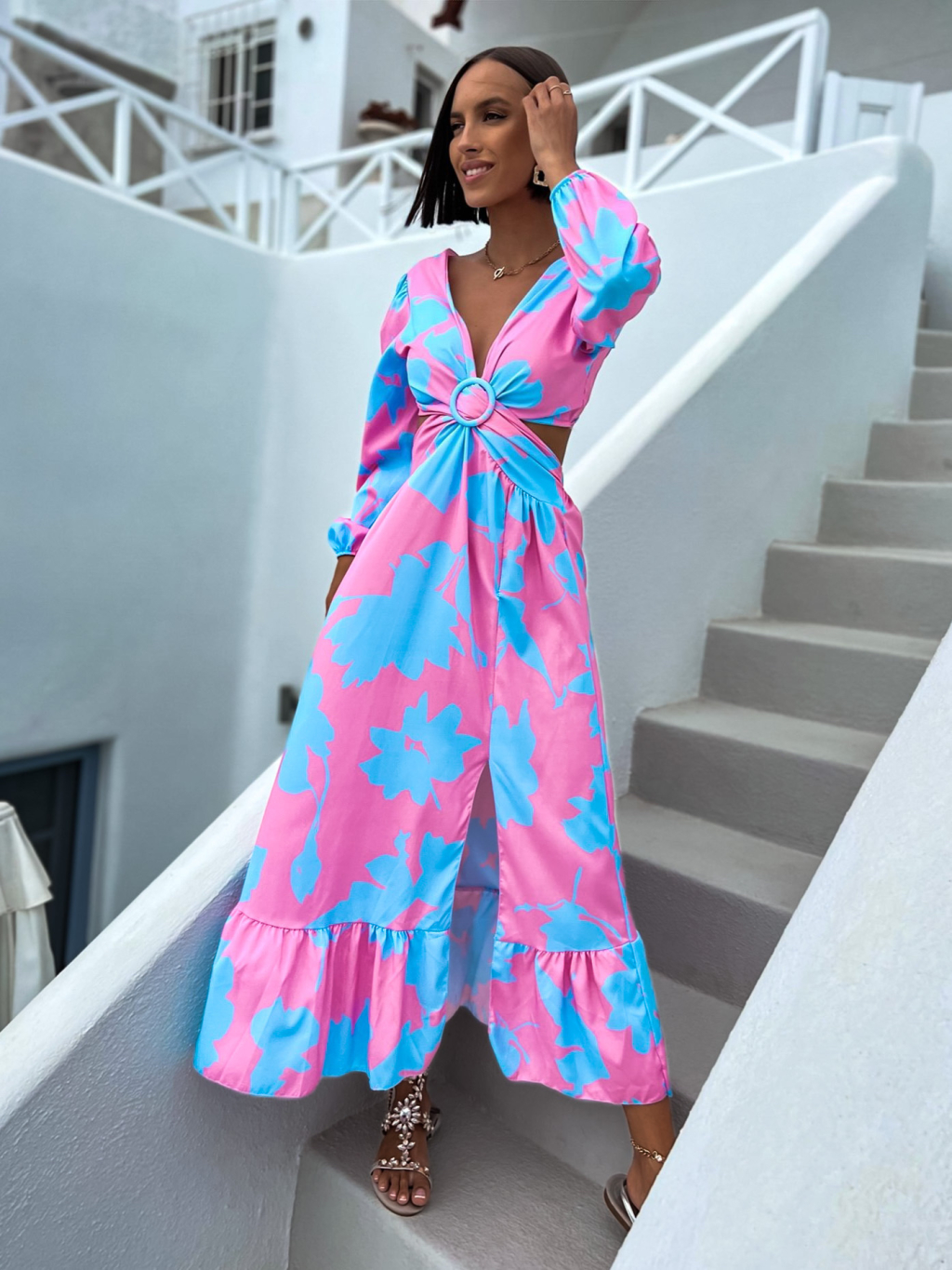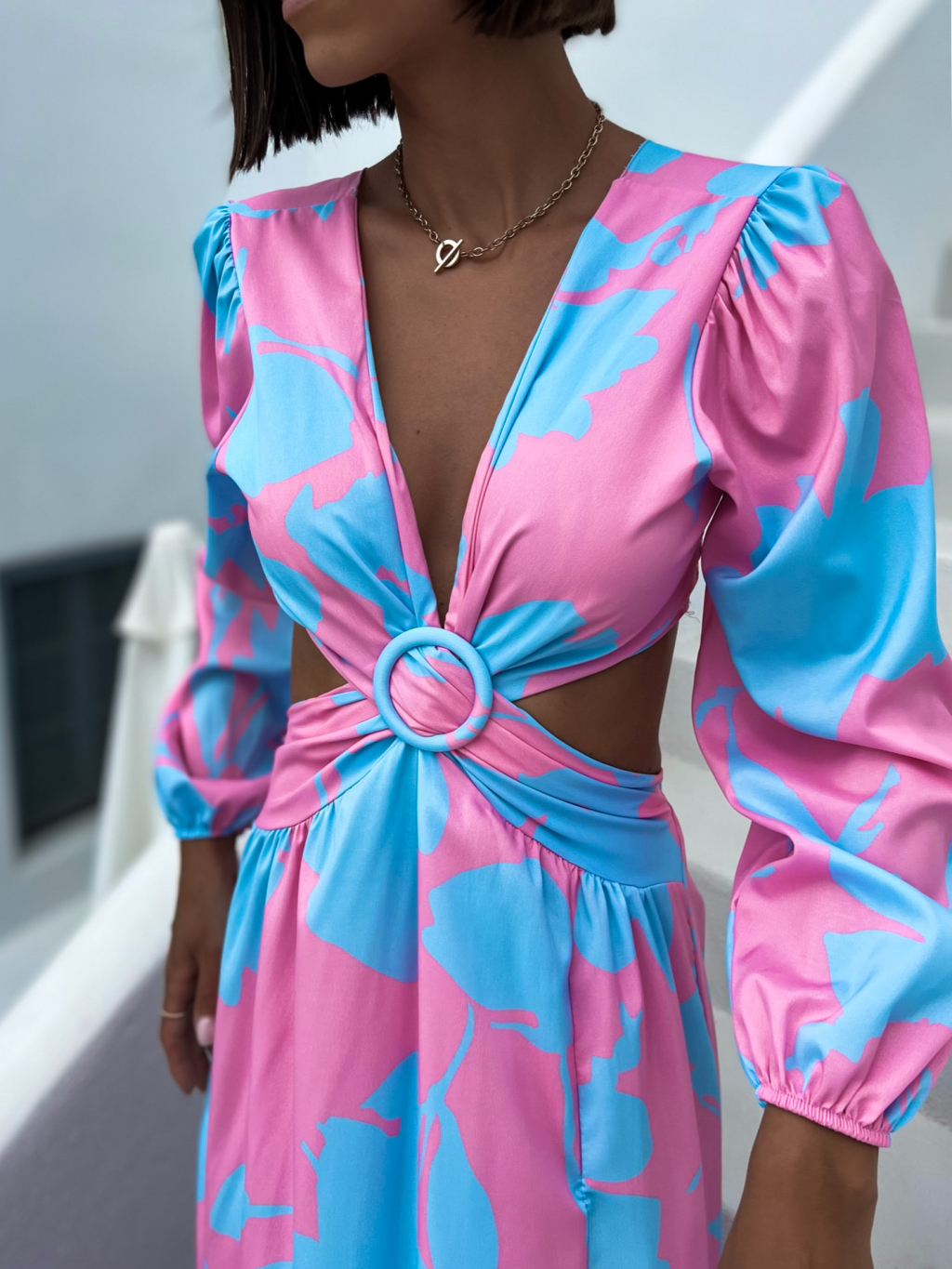 Růžovo modré světlejší elegantní šaty CASSIUS s rozparkem