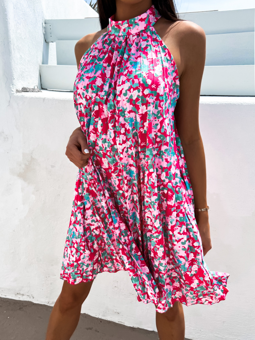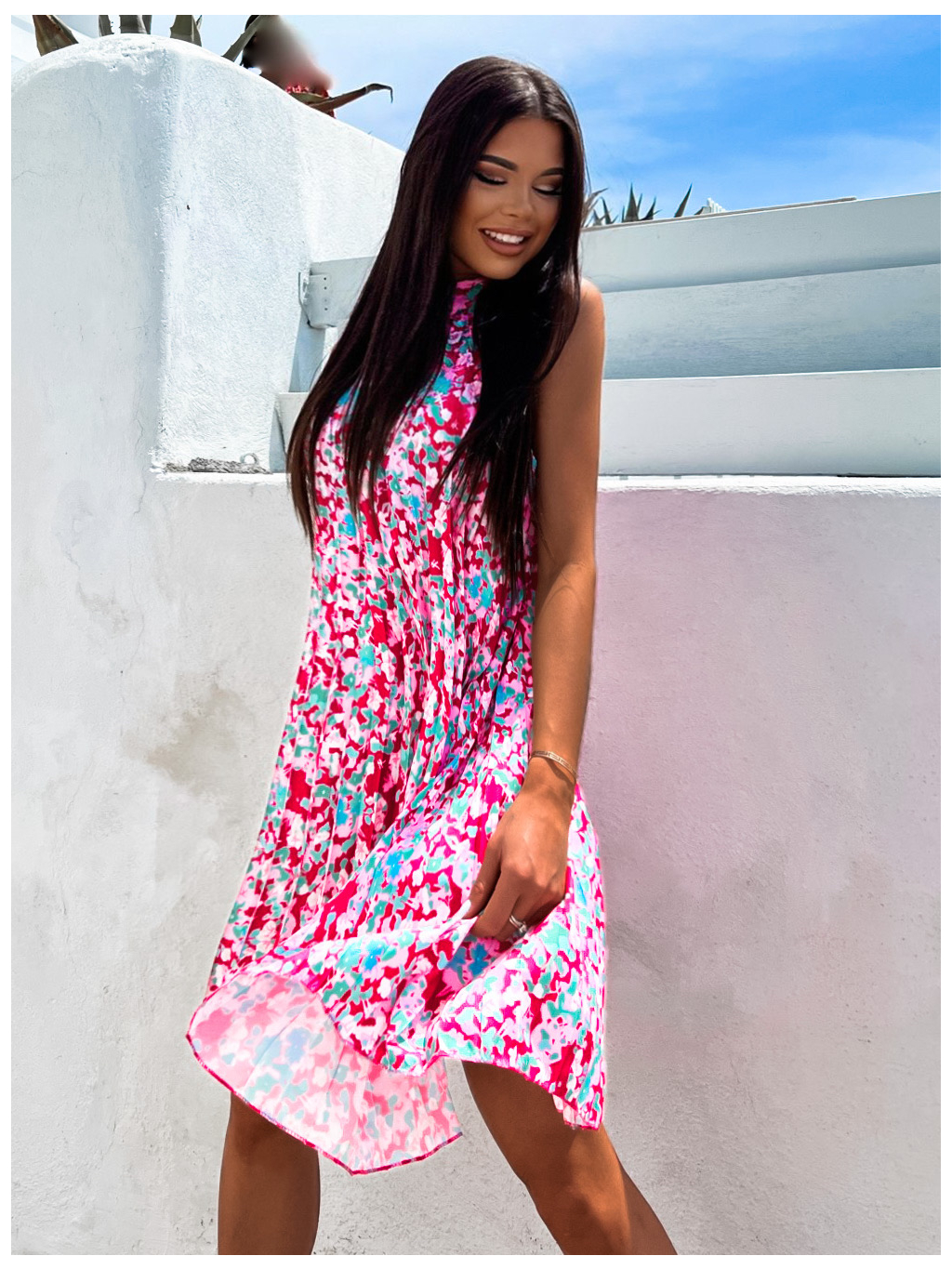 Růžovo zelené elegantní šaty Metta s květinovým vzorem