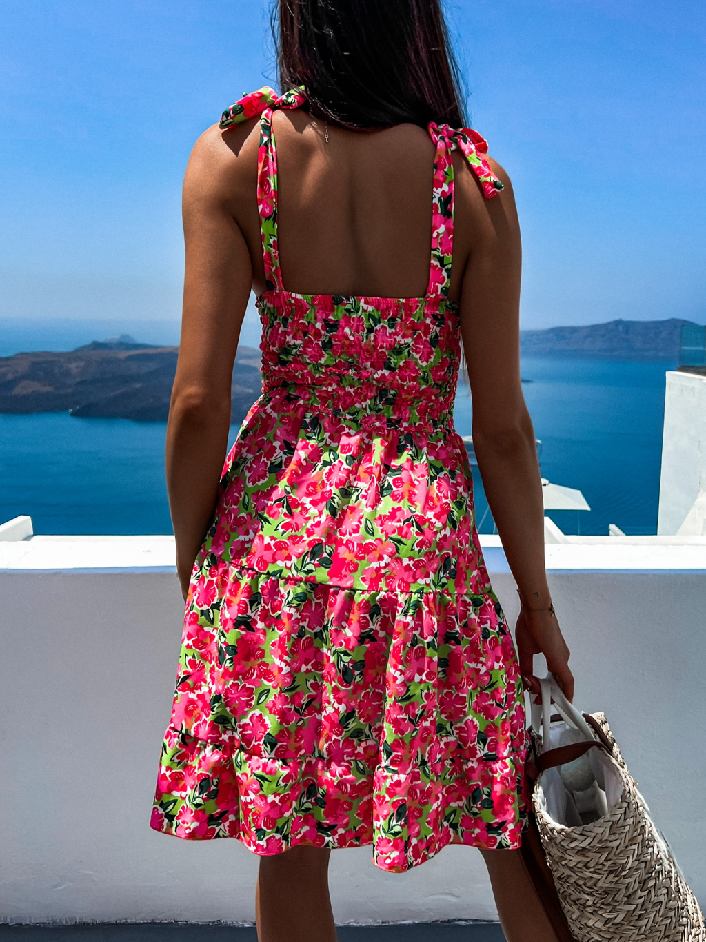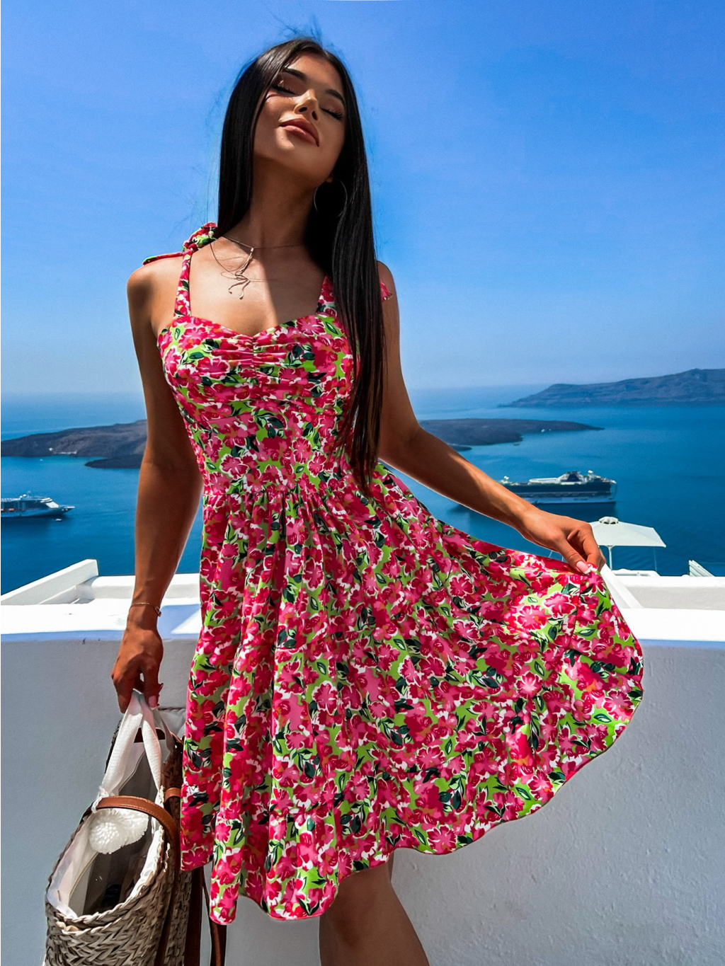 Růžovo zelené květinové šaty ZINNA s volánkem