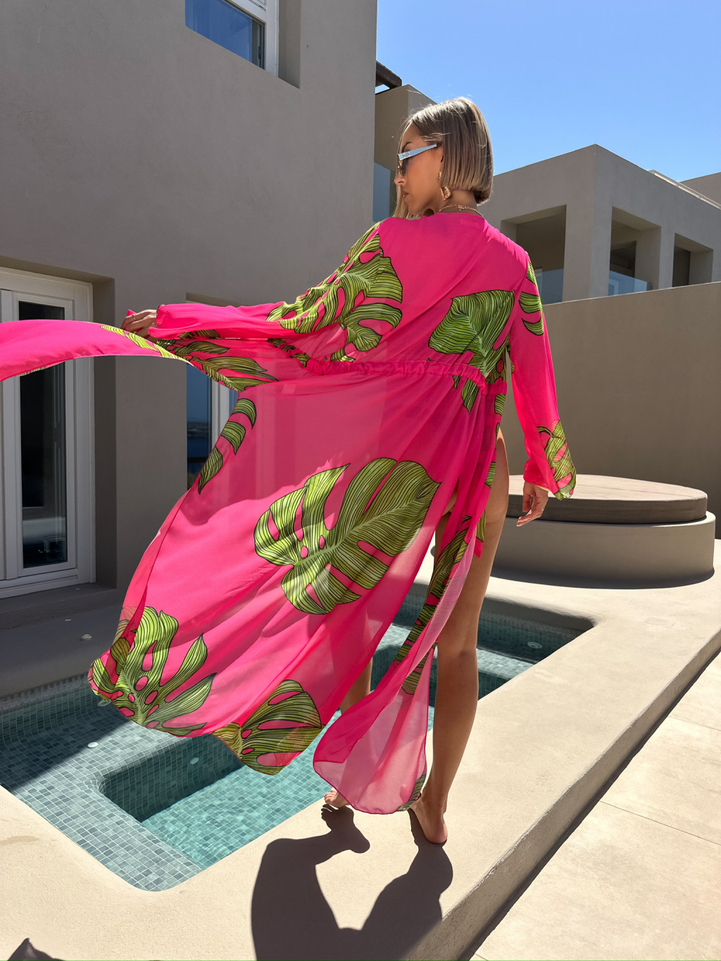 Růžový lehký přehoz MELETE s přírodními vzory
