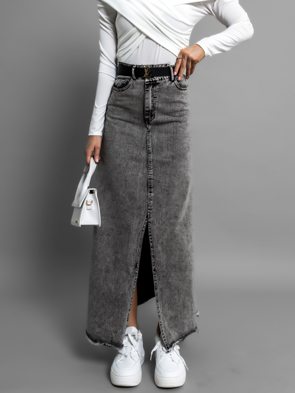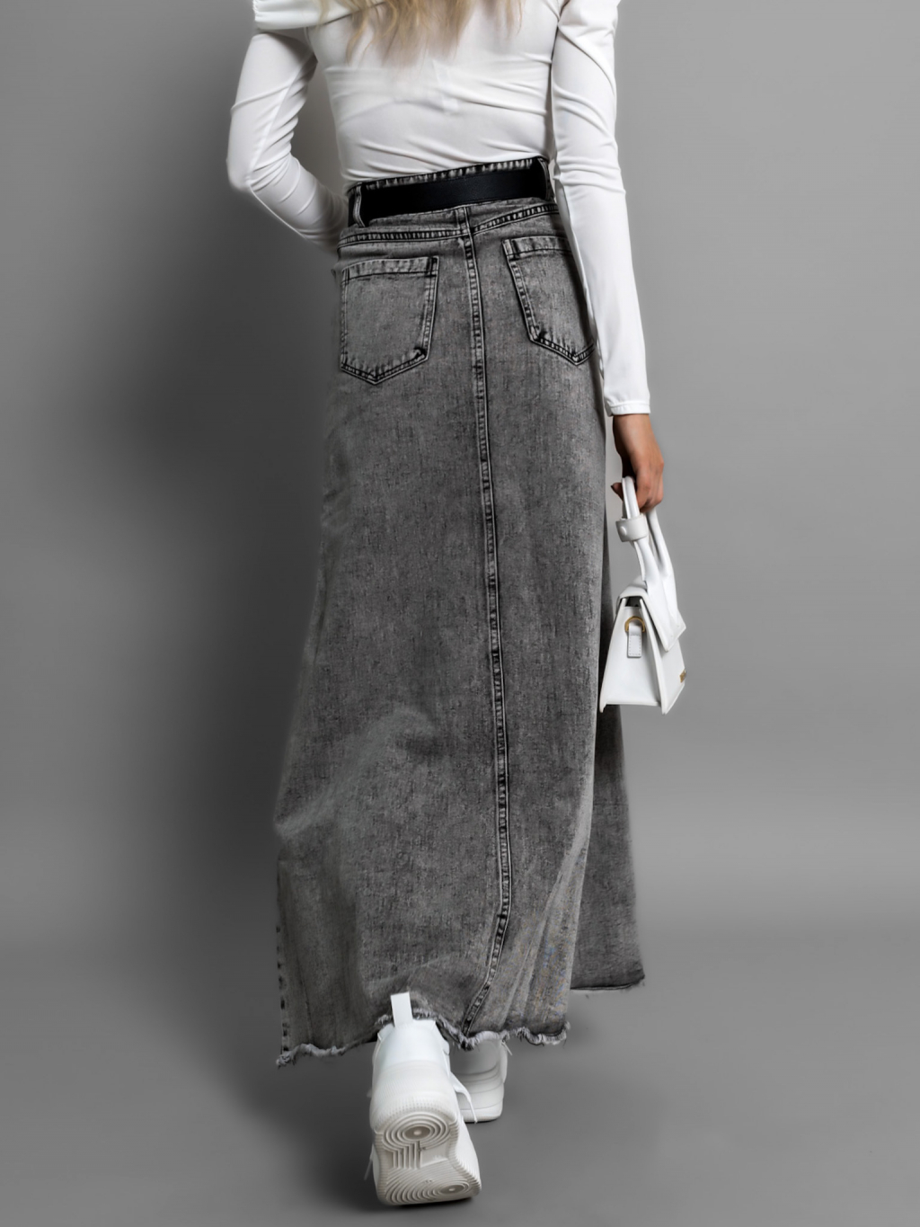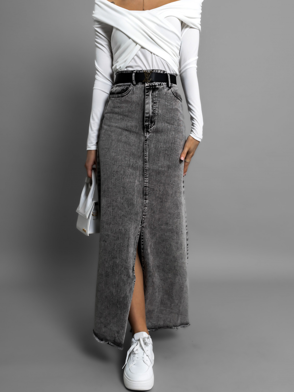 Šedá dlouhá džínová sukně JANDRIS