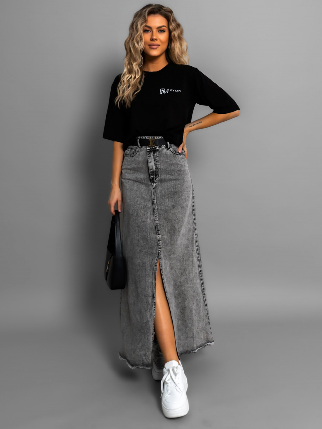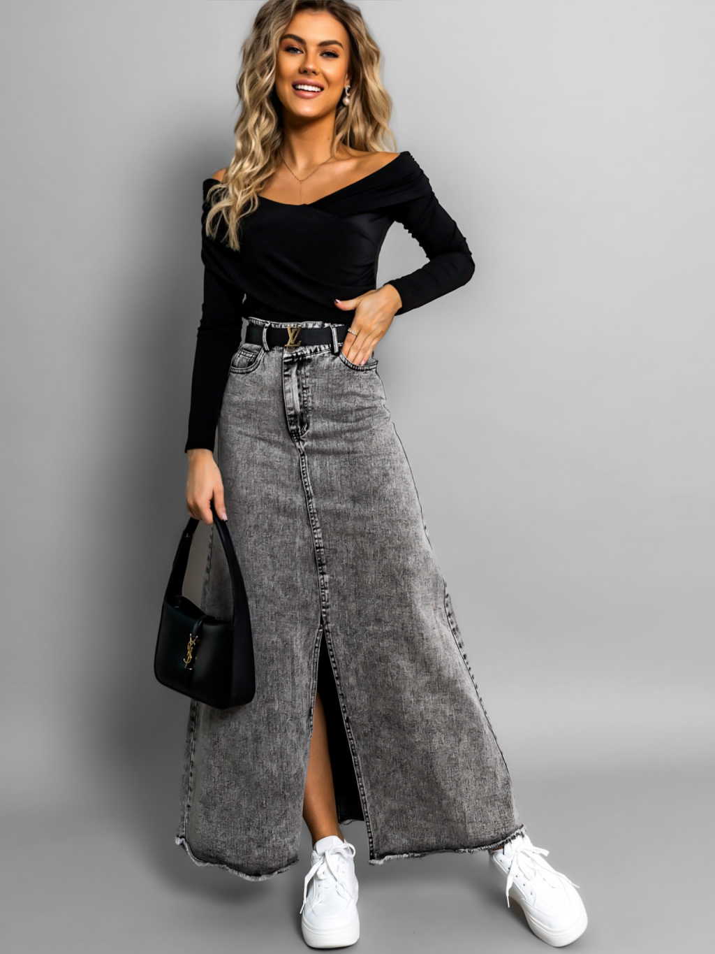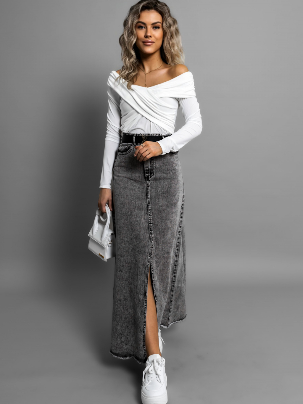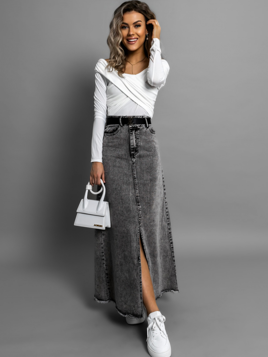 Šedá dlouhá džínová sukně JANDRIS