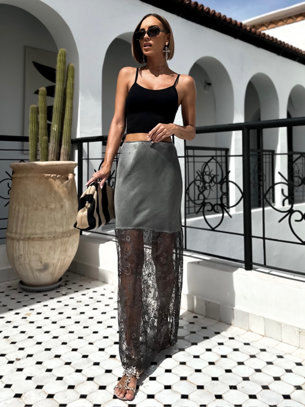 Šedá dlouhá elegantní sukně LEWIN s krajkou