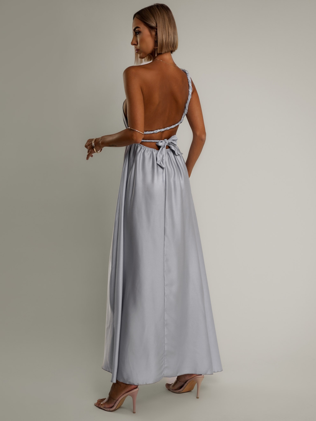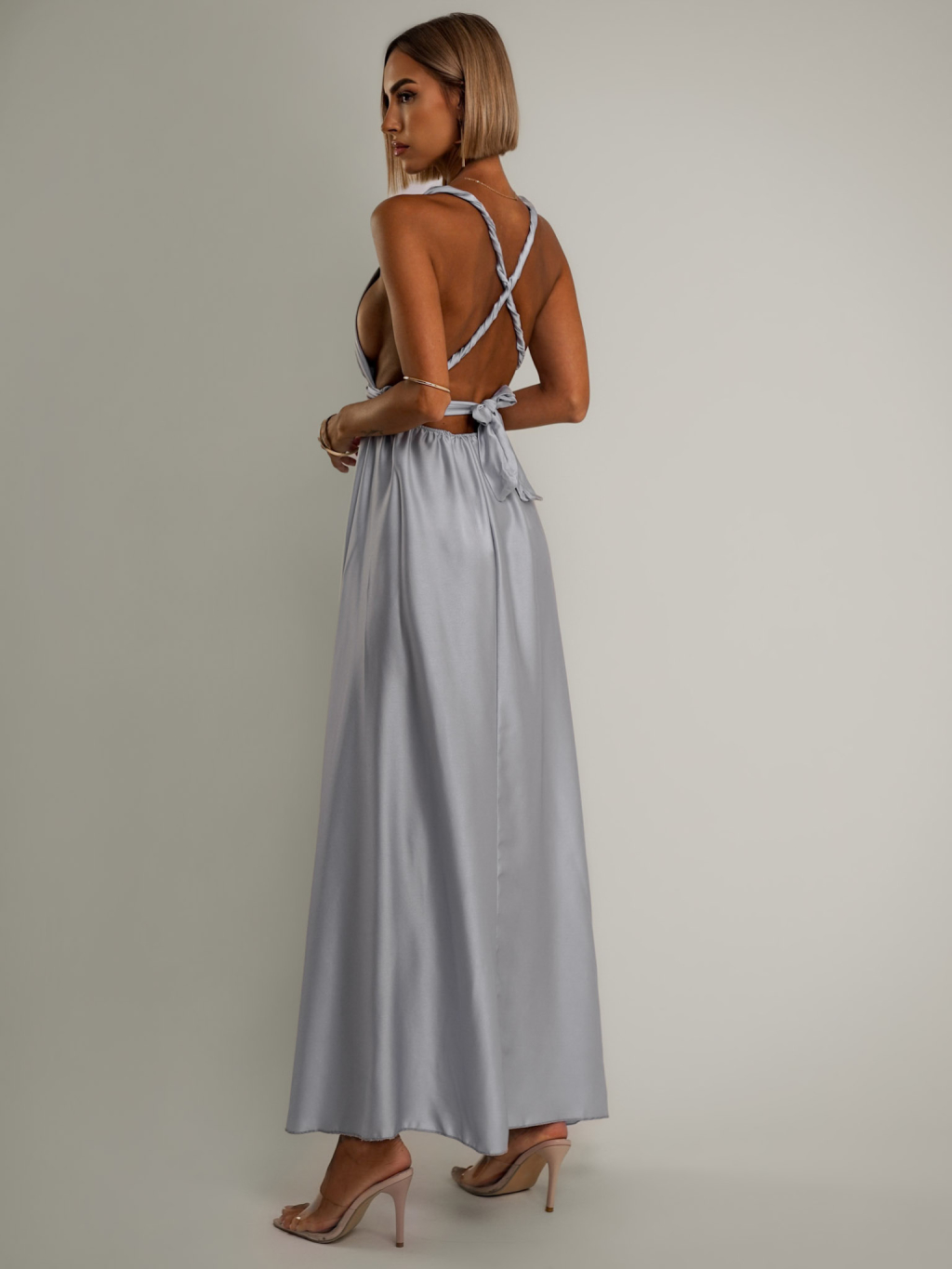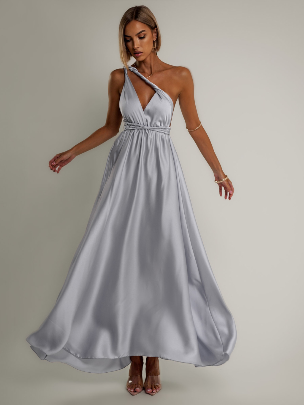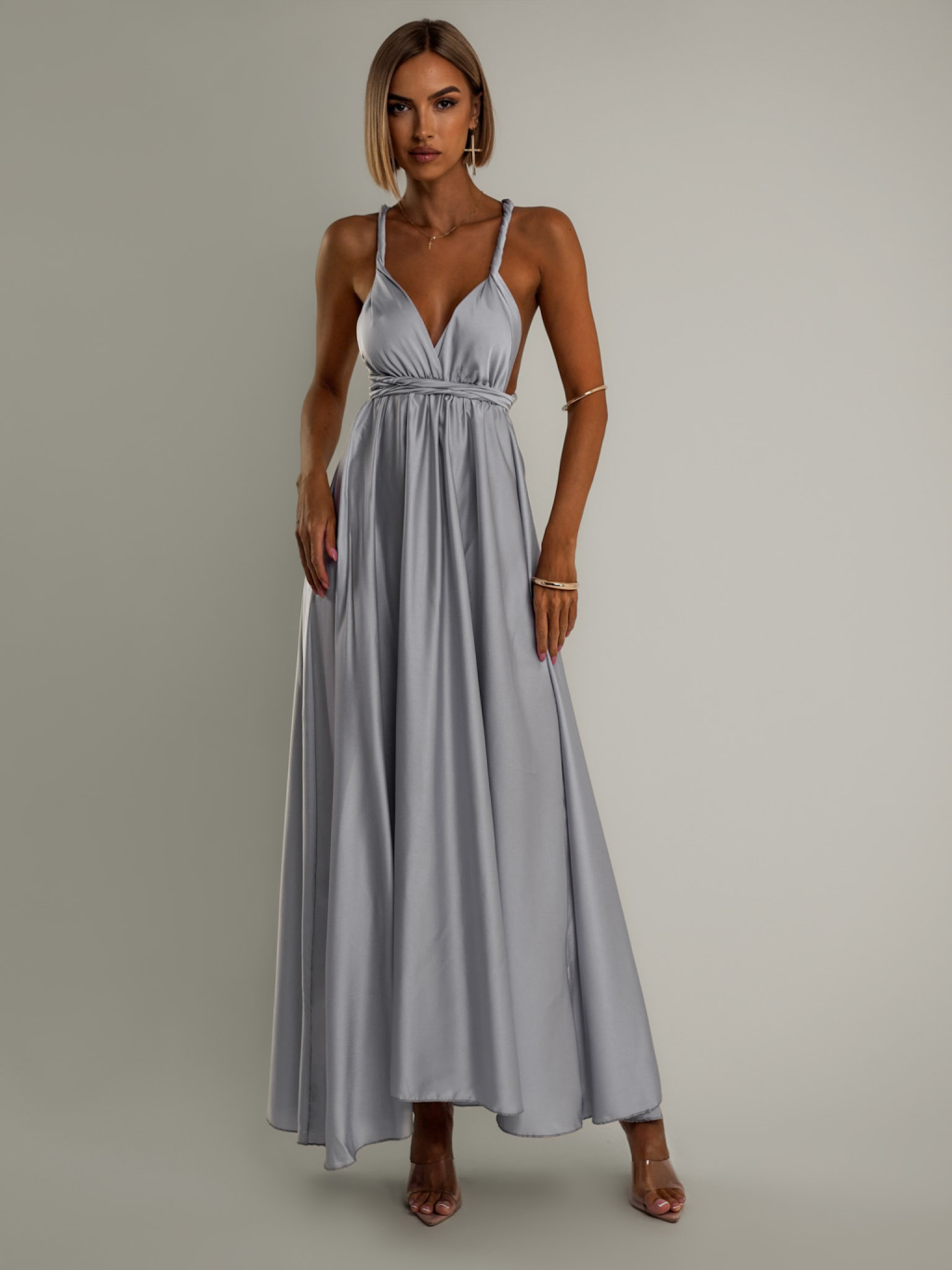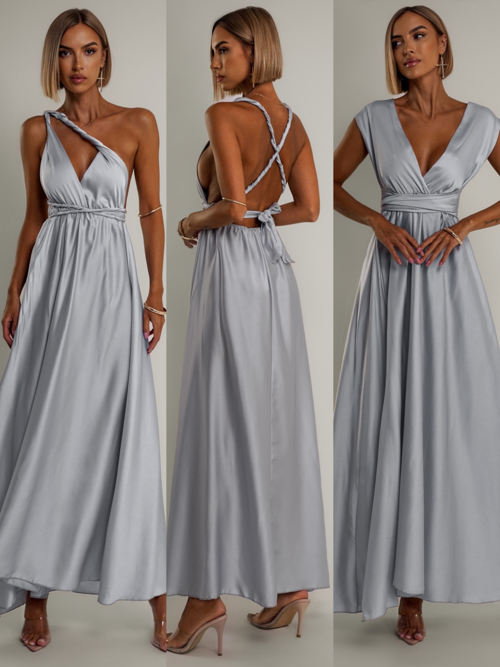 Šedé lesklé šaty VALERDY s variabilním vázáním / bez rozparku