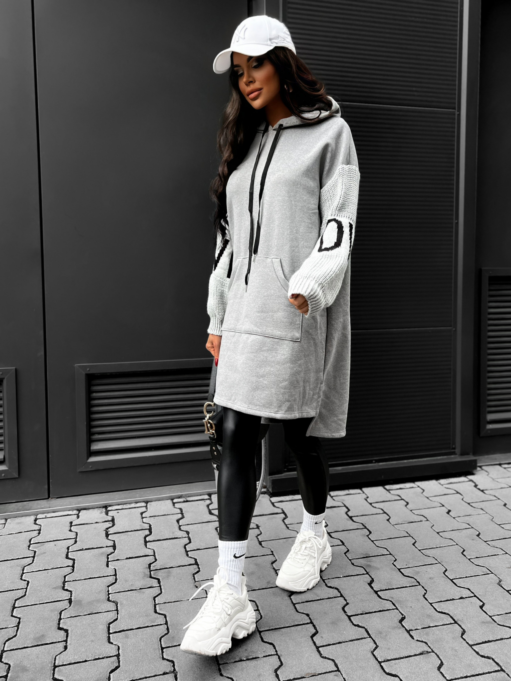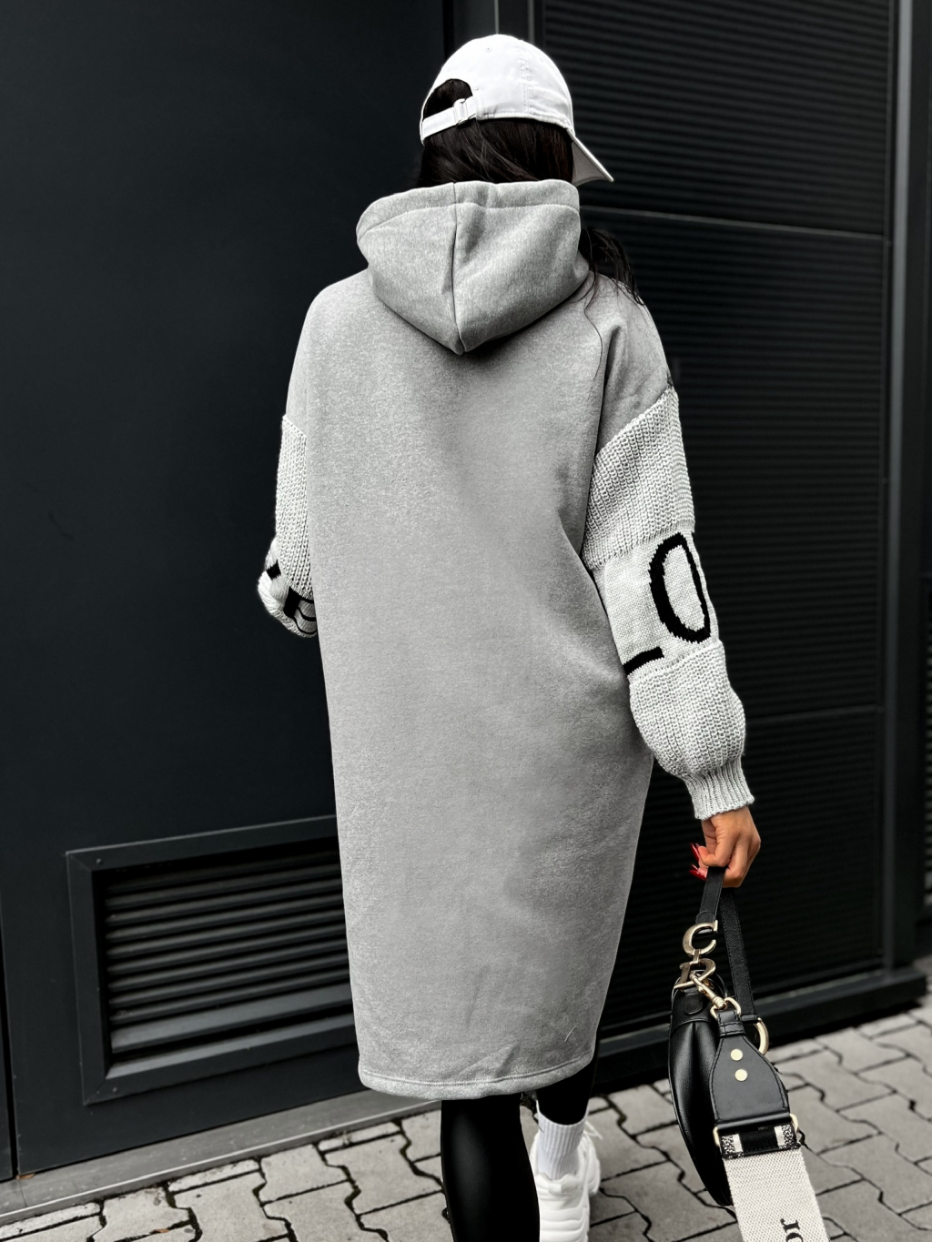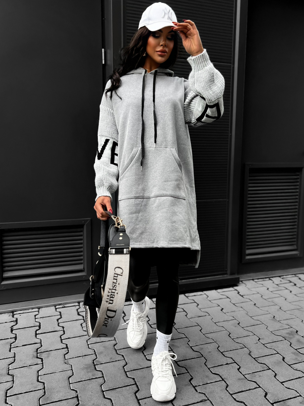 Šedé mikinové šaty ISHIK se svetrovými rukávy
