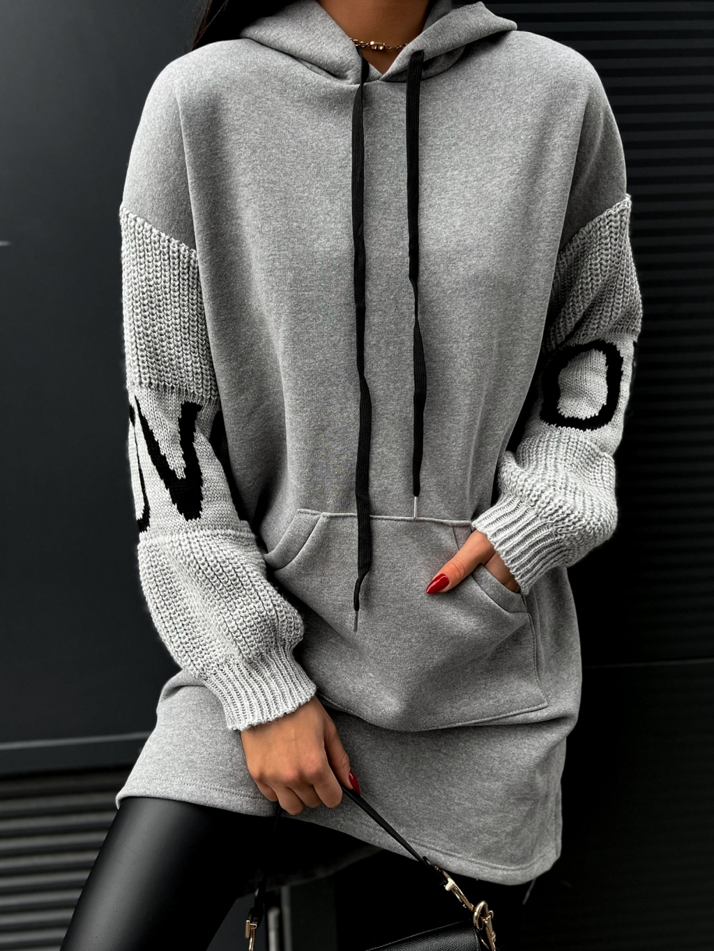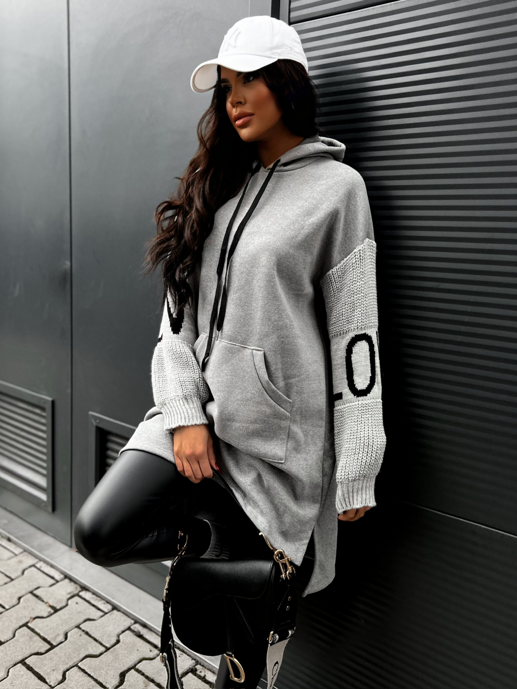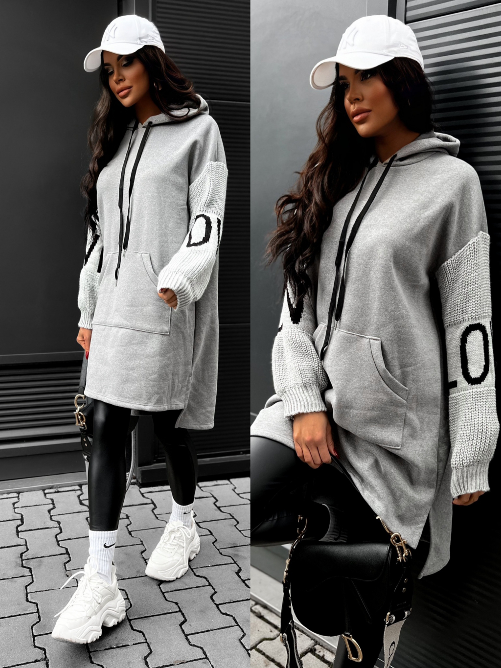 Šedé mikinové šaty ISHIK se svetrovými rukávy