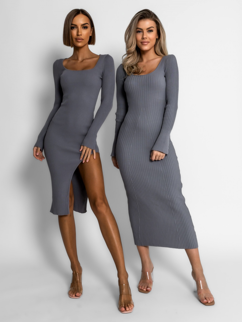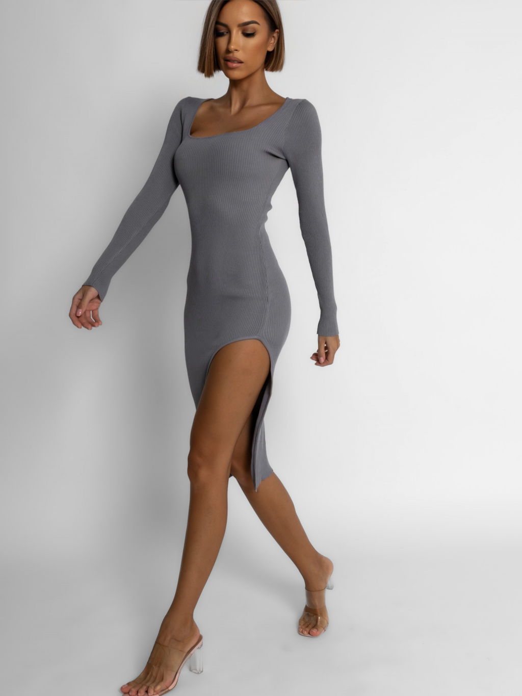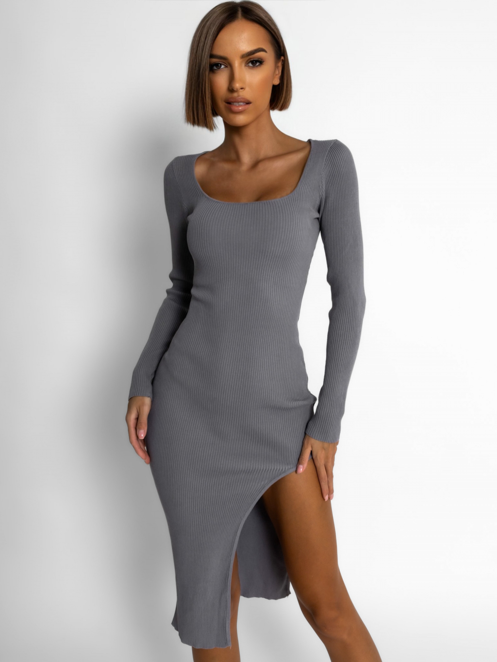 Šedé šaty MOHEGAN s rozparkem