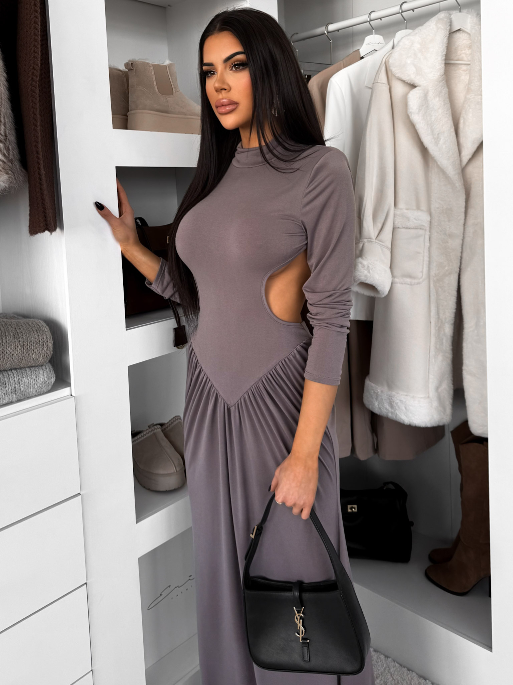 Šedé společenské dlouhé šaty EVANIE s průstřihy