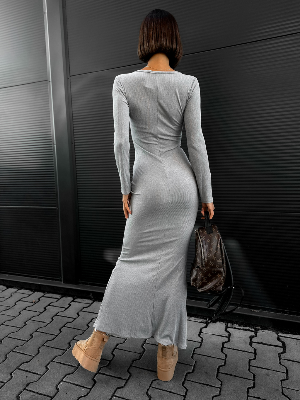 Šedé žerzejové šaty GIRESUN s dlouhým rukávem