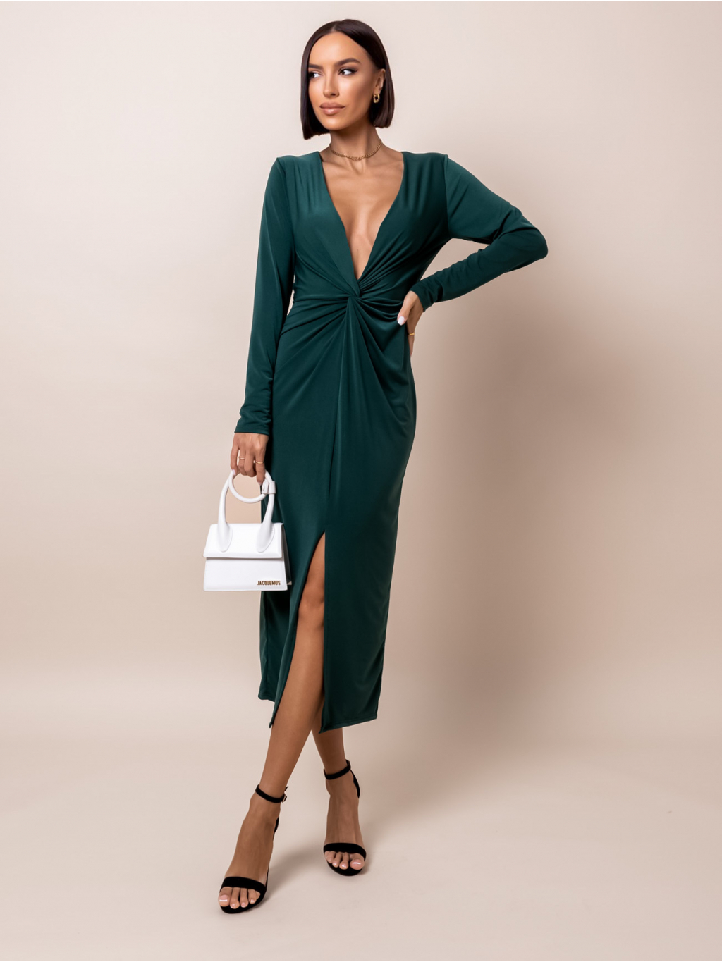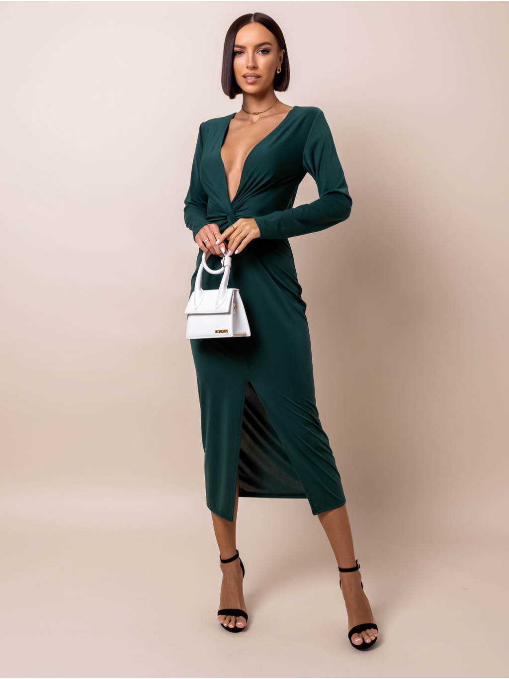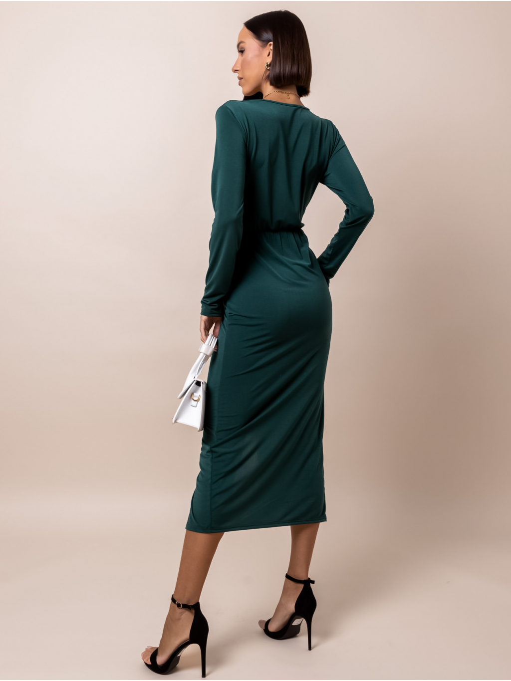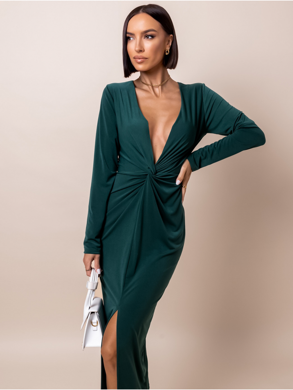 Smaragdové dlouhé šaty SHILOHI s výstřihem do V
