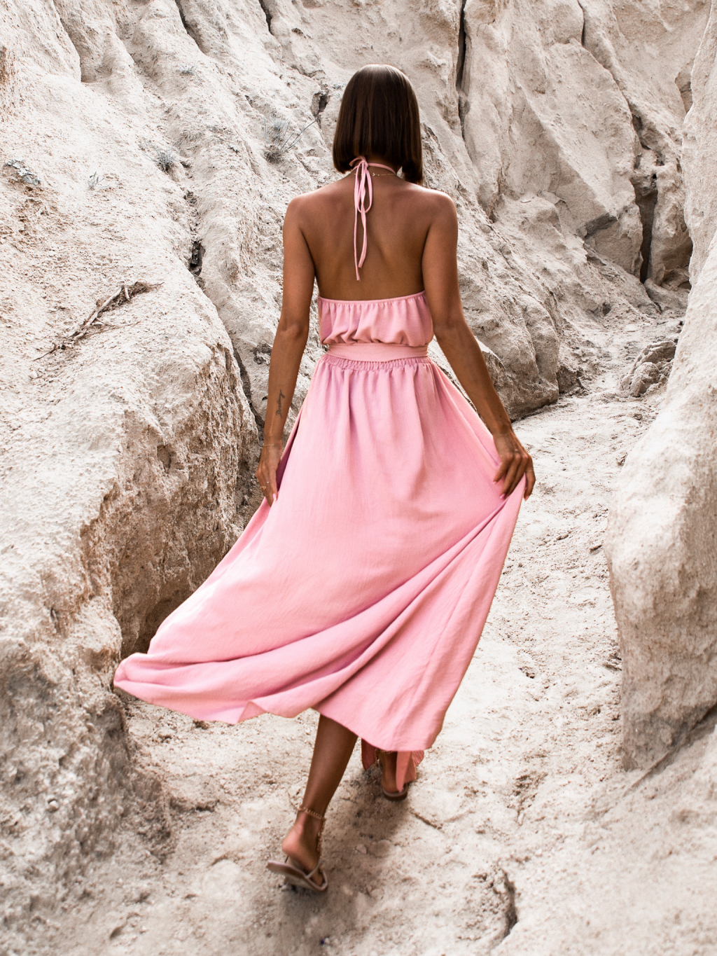 Starorůžové delší elegantní šaty MYSTIS s rozparky