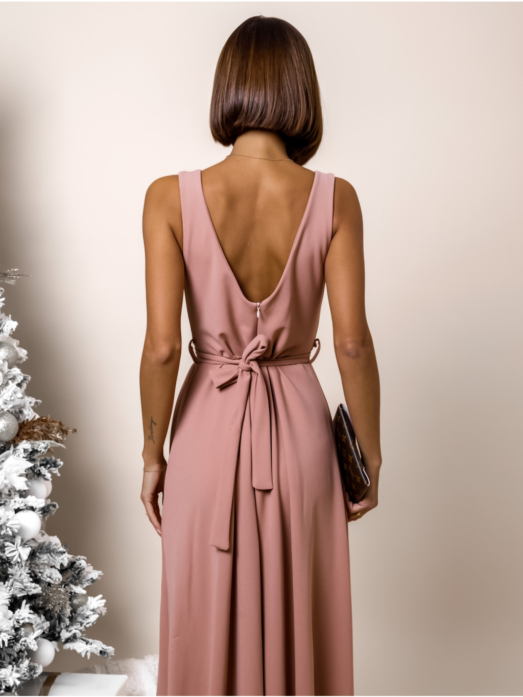 Starorůžové dlouhé elegantní šaty PERLLAS se štrasovým opaskem