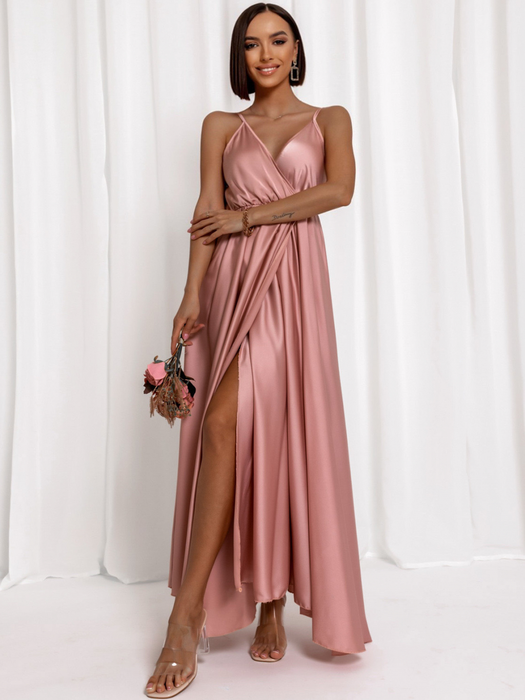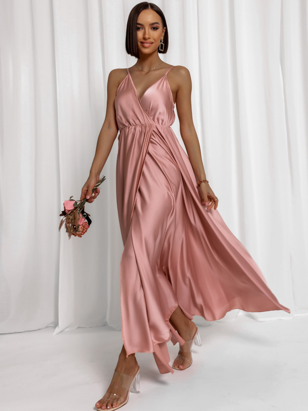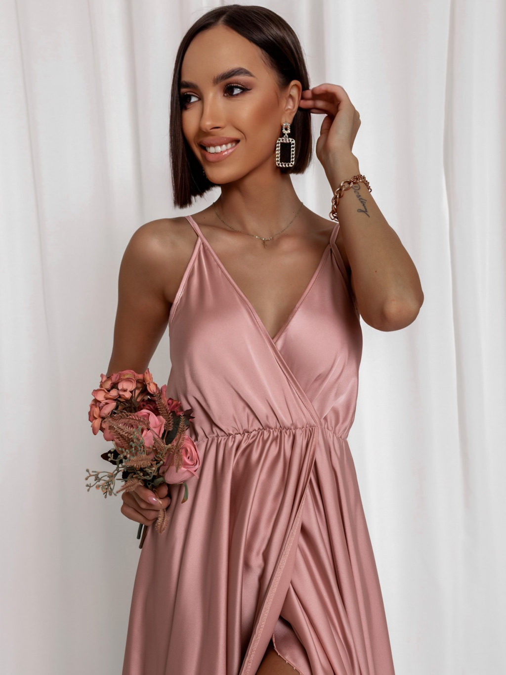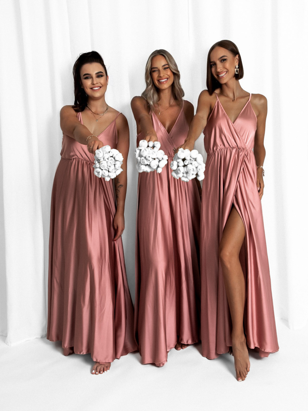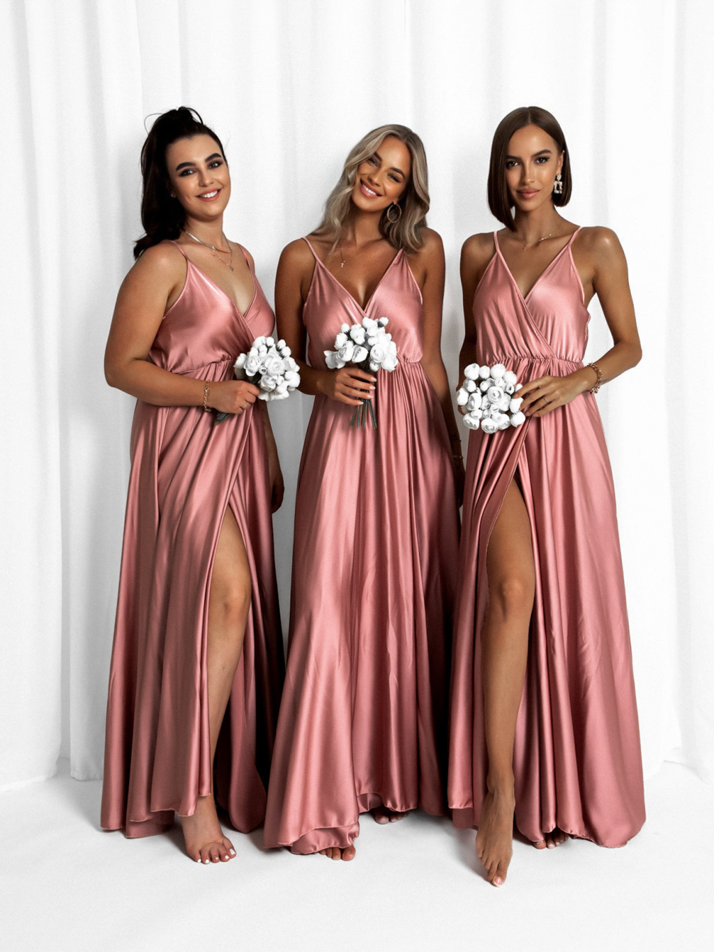 Starorůžové dlouhé lesklé šaty PERFECTLY