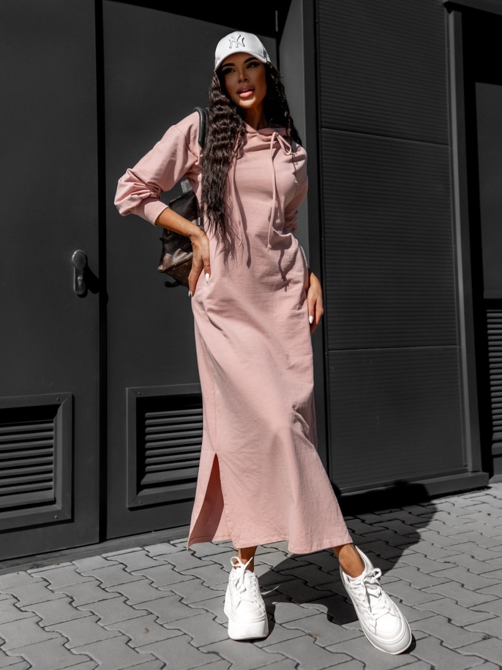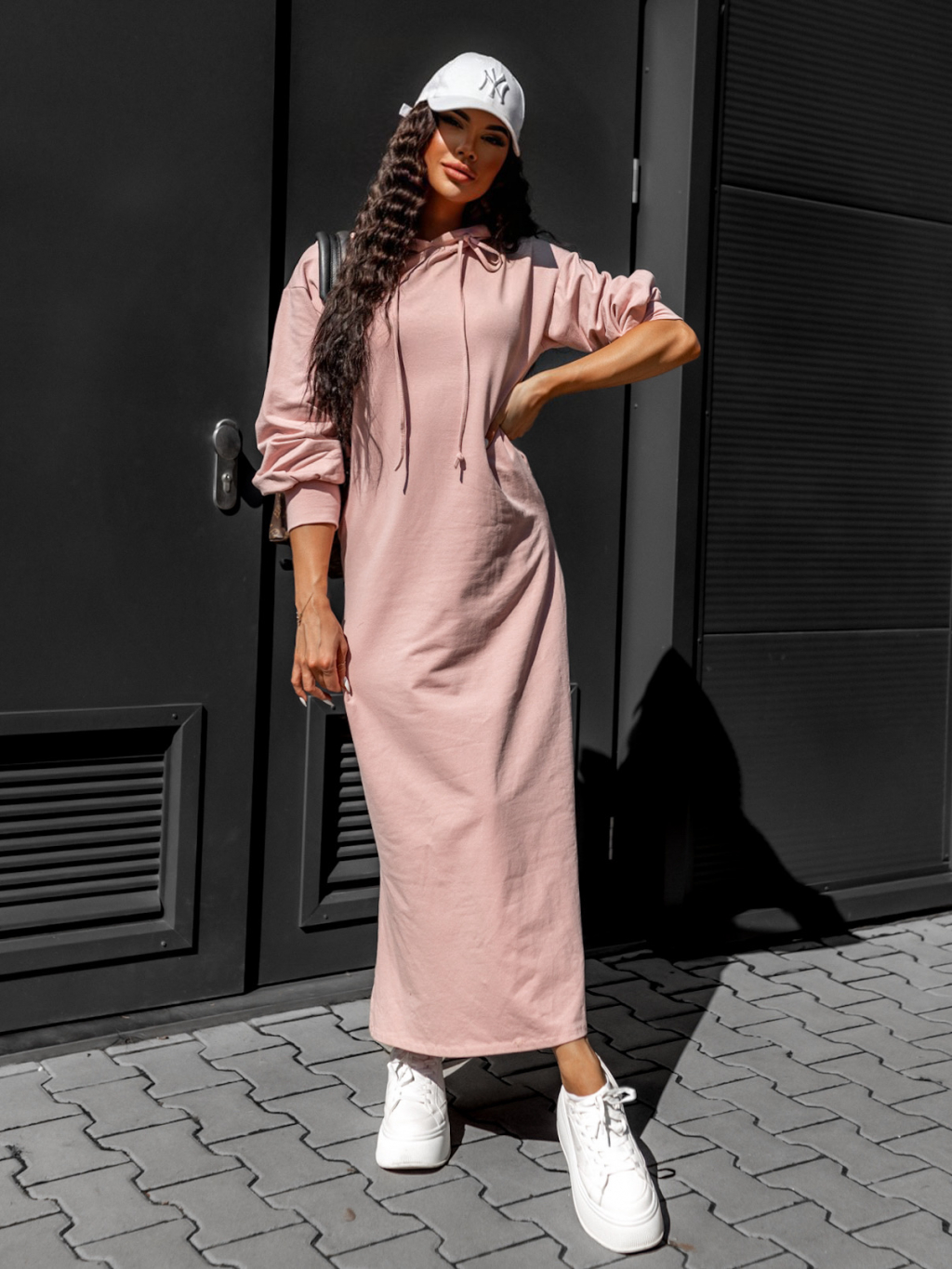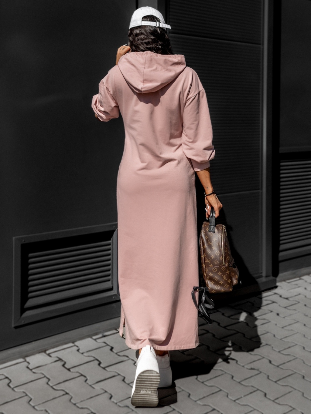 Starorůžové dlouhé mikinové šaty CENTAENY s kapucí