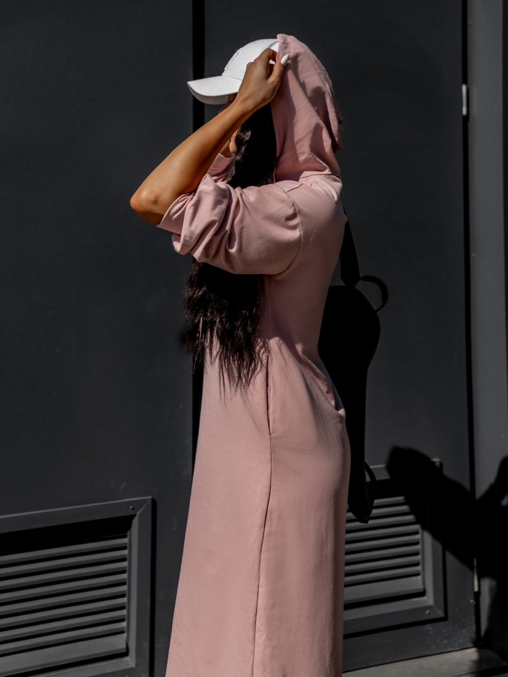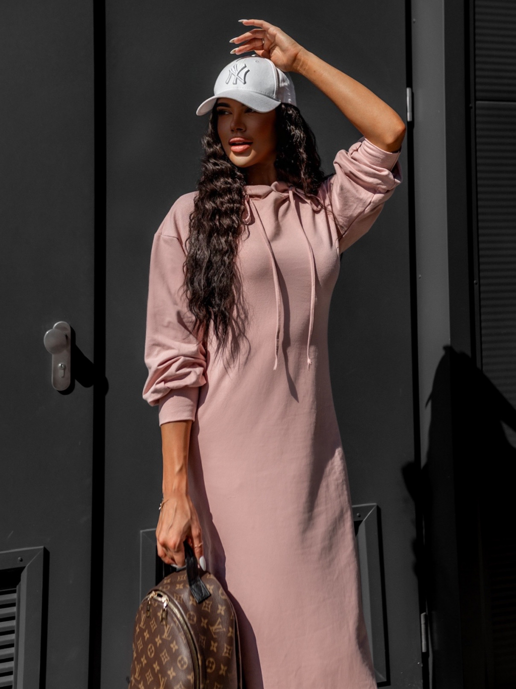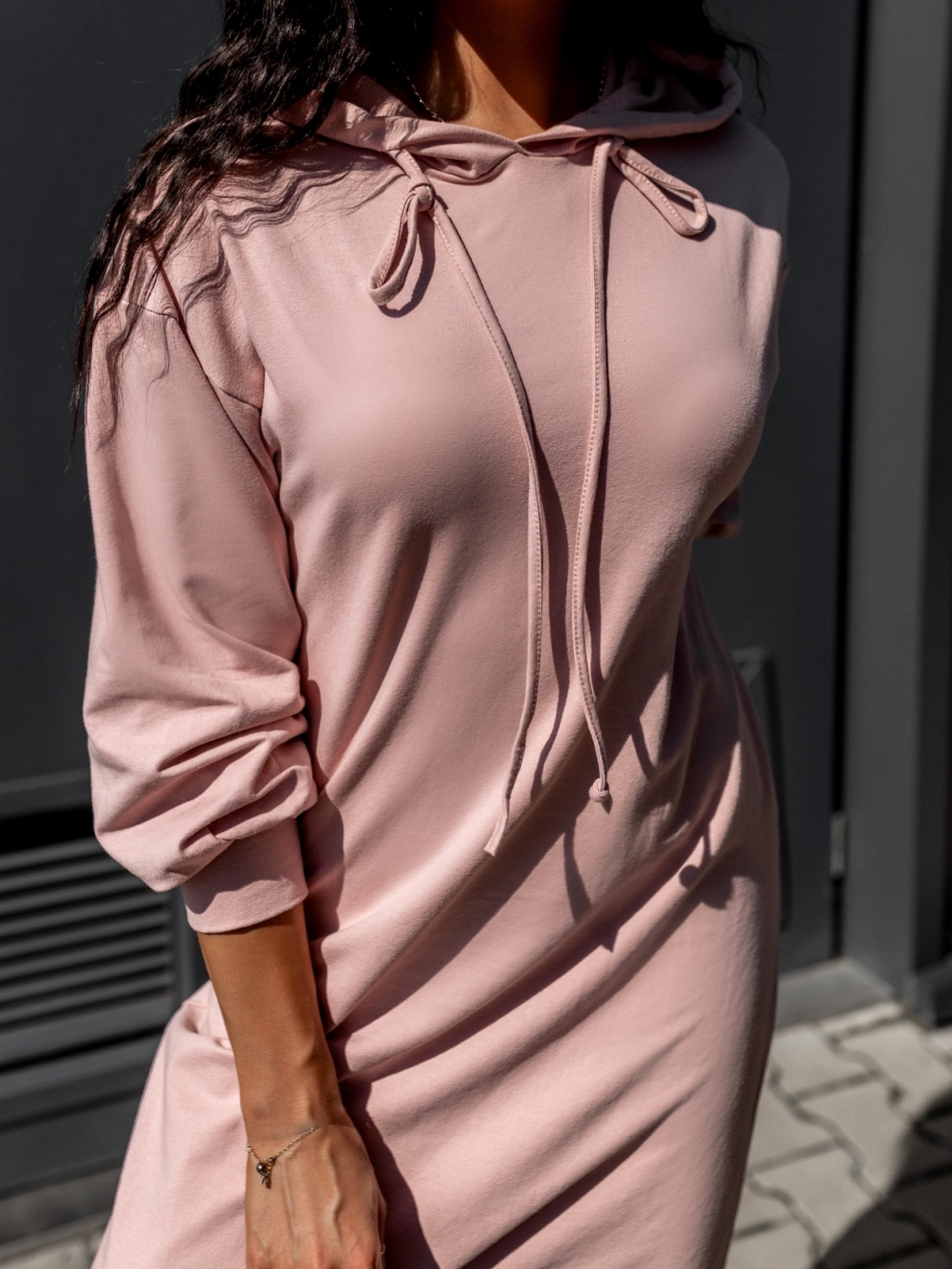 Starorůžové dlouhé mikinové šaty CENTAENY s kapucí