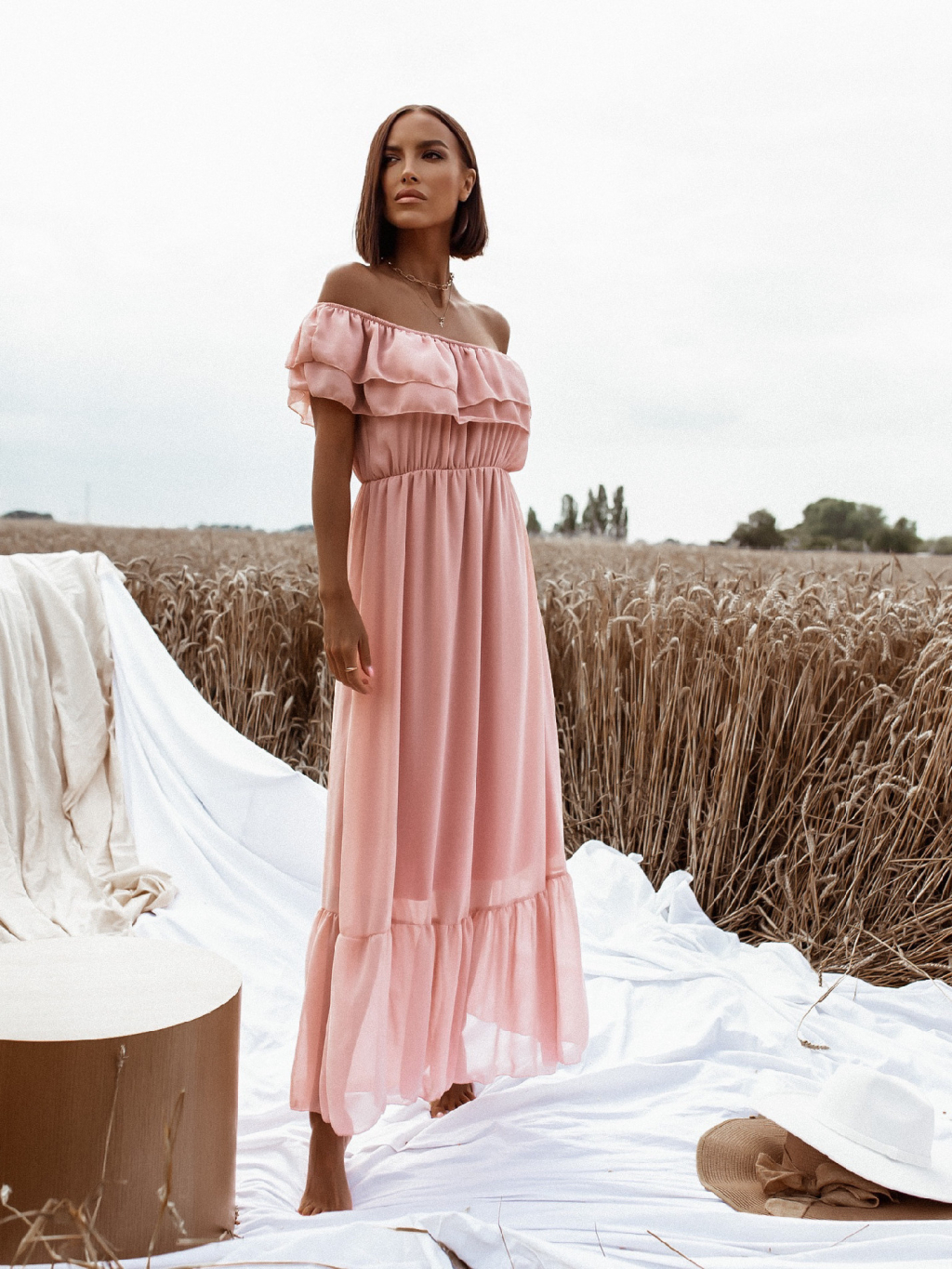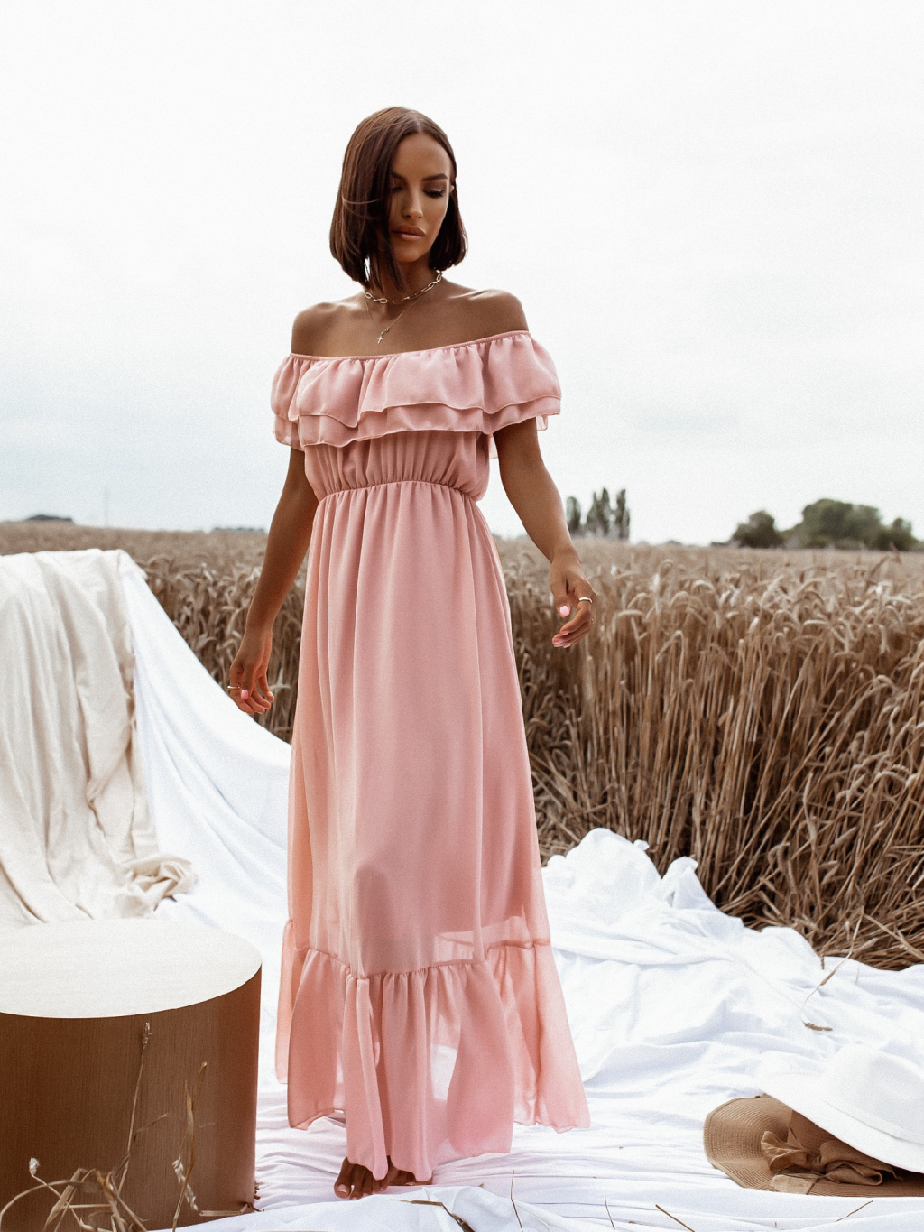 Starorůžové dlouhé šaty BETTER s volánky