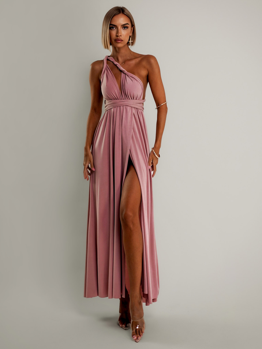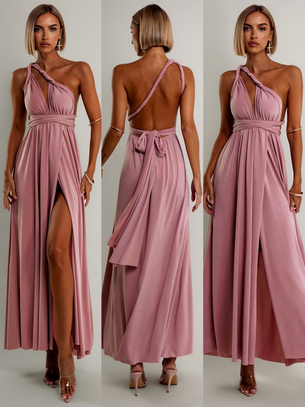 Šaty Katie jsou dokonalou volbou na plesy i pro družičky. S elegantním designem, rozparkem a možností variabilního vázání nabízejí nejen perfektní padnutí, ale také jedinečný a půvabný vzhled pro každou příležitost.