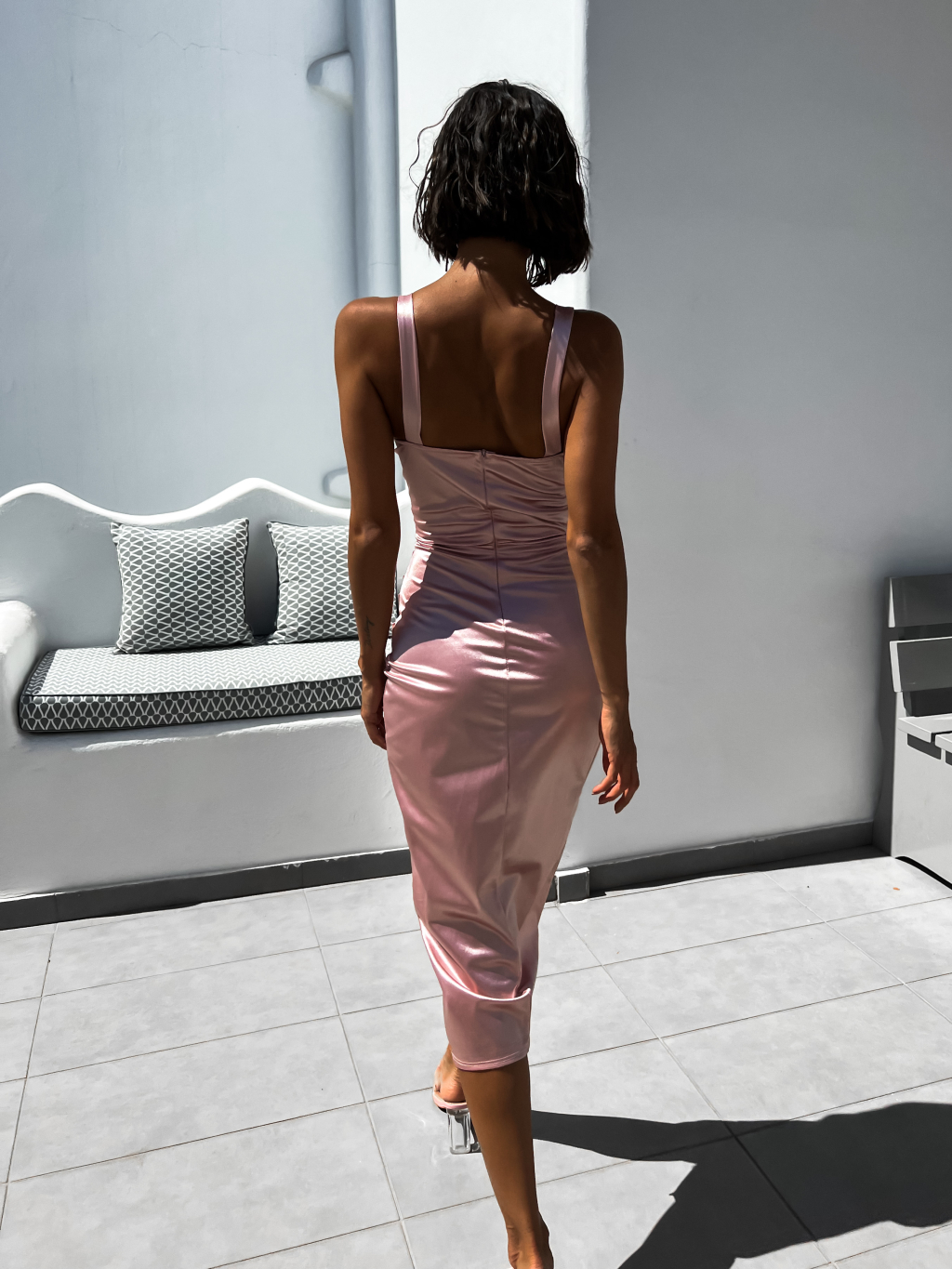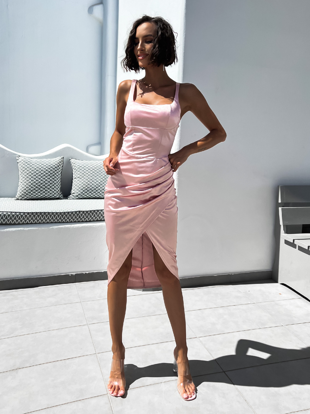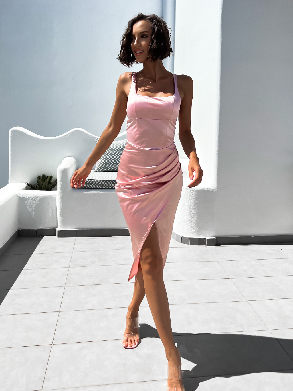 Starorůžové elegantní šaty CURLITE s rozparkem