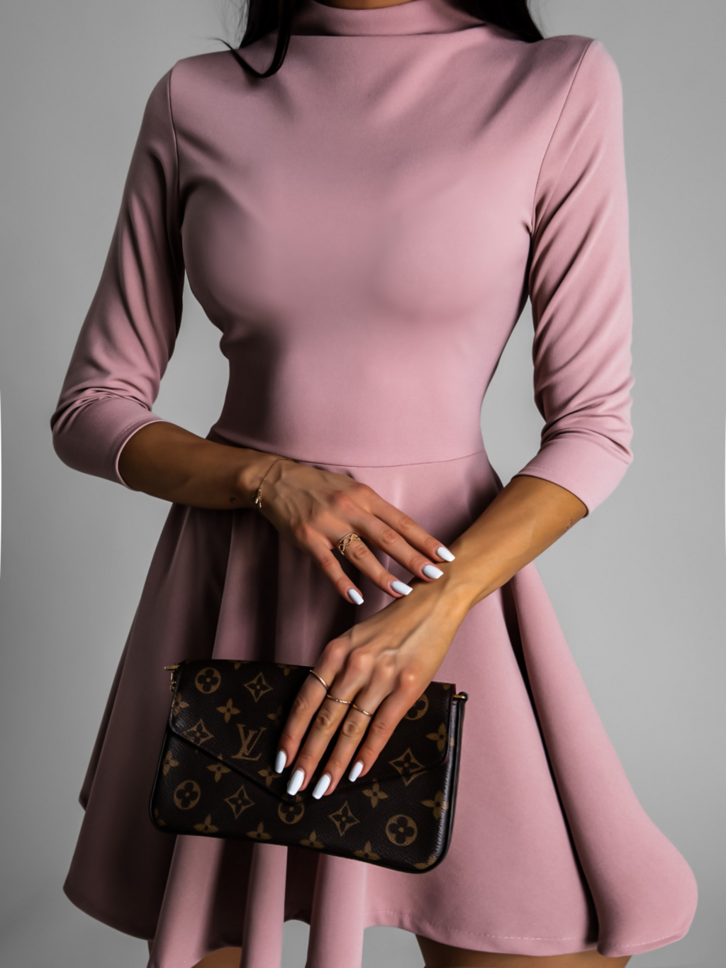 Starorůžové elegantní šaty GROUND s dlouhým rukávem