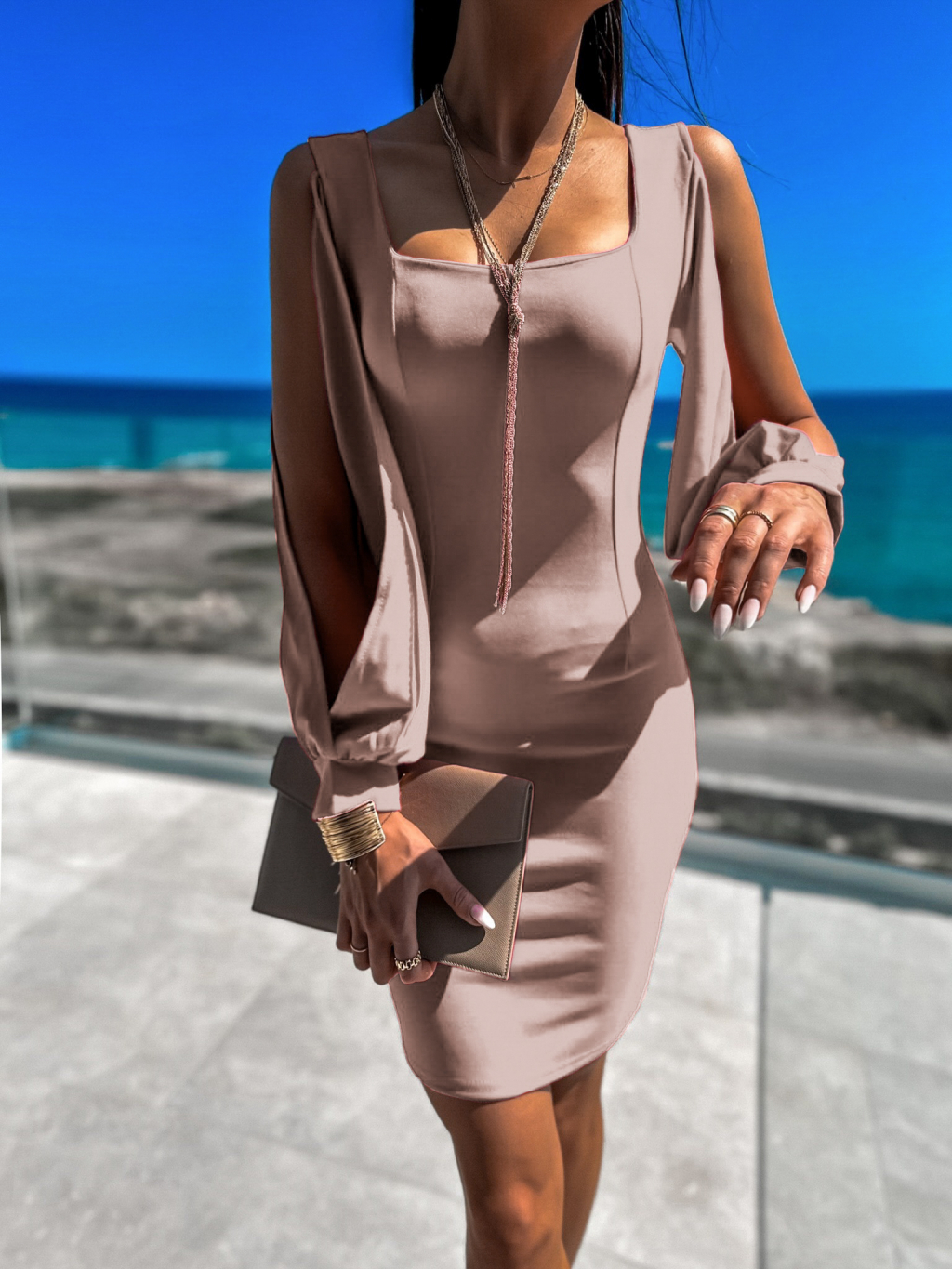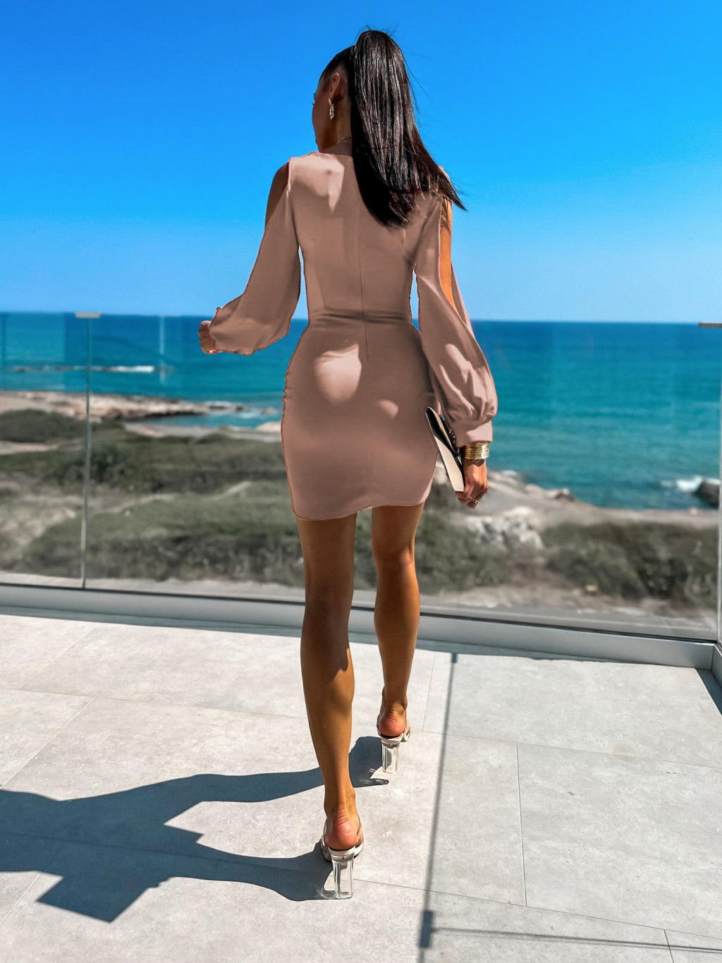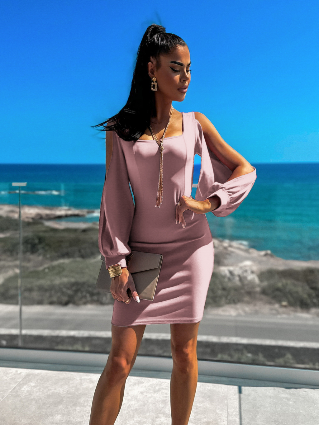 Starorůžové elegantní šaty RENDAE s průstřihy na rukávu