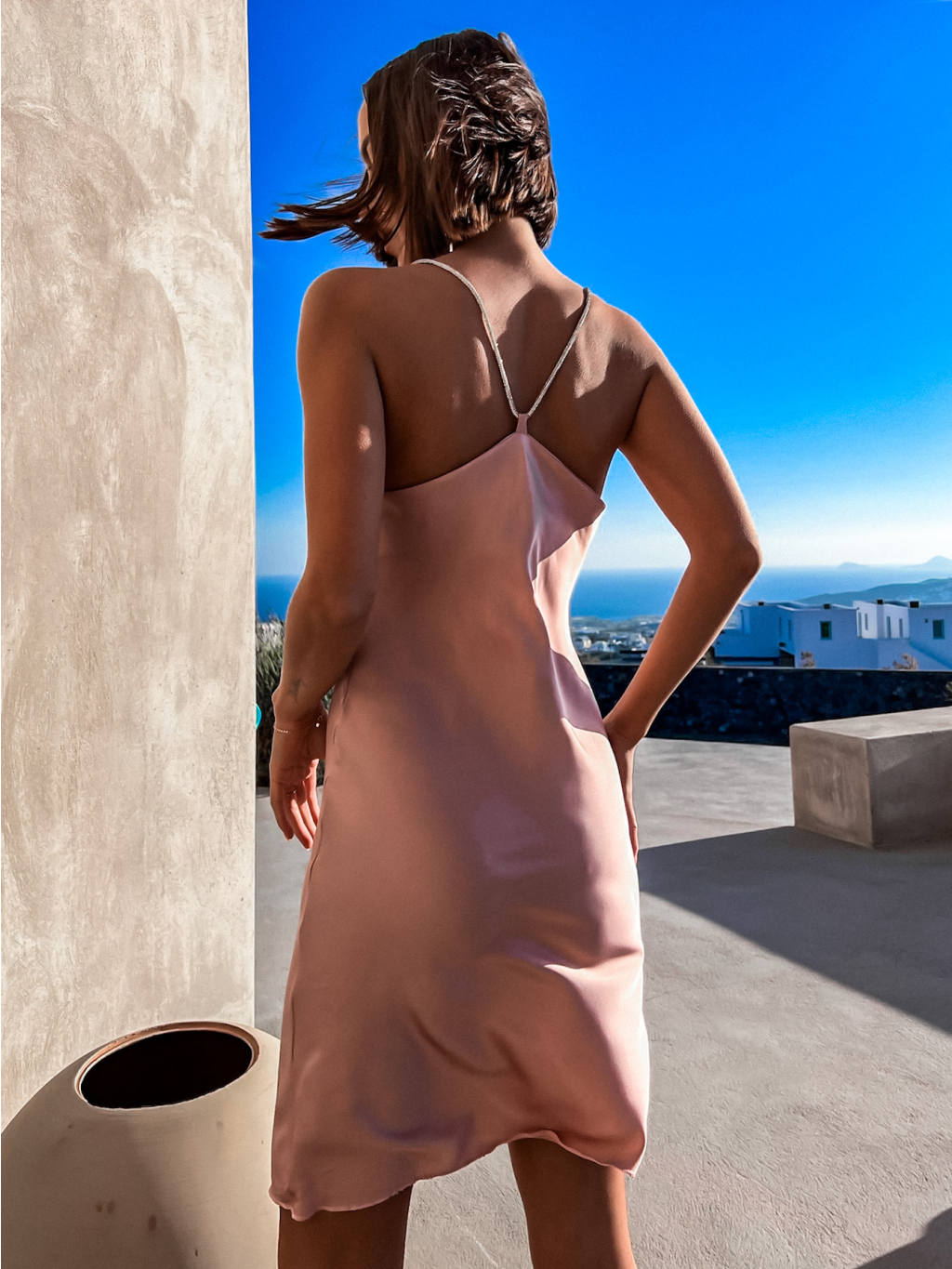 Starorůžové lesklé elegantní šaty LEMMI se třpytivými ramínky