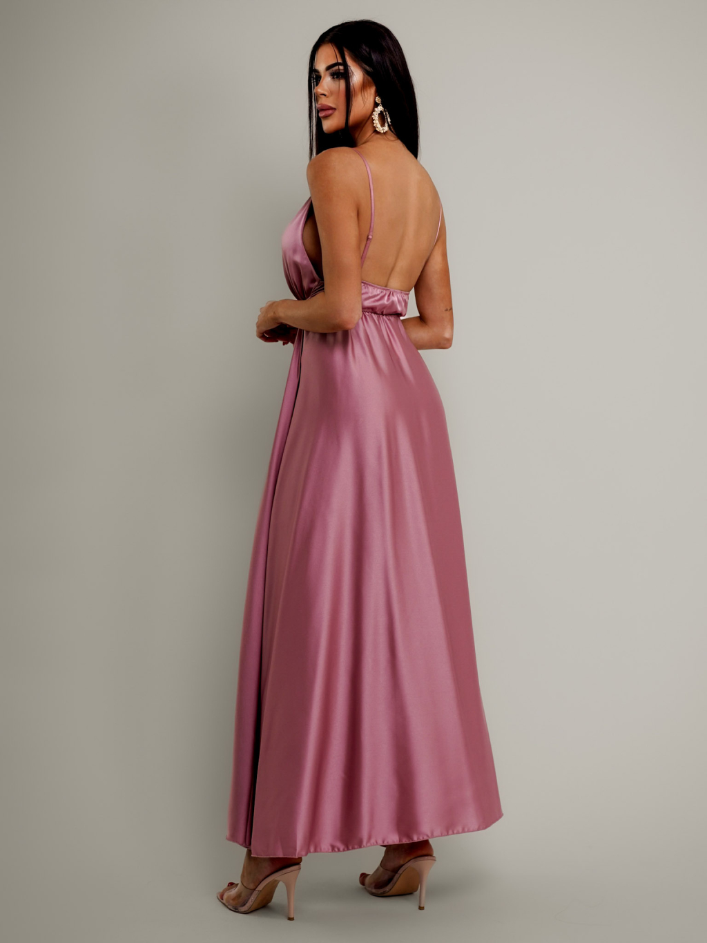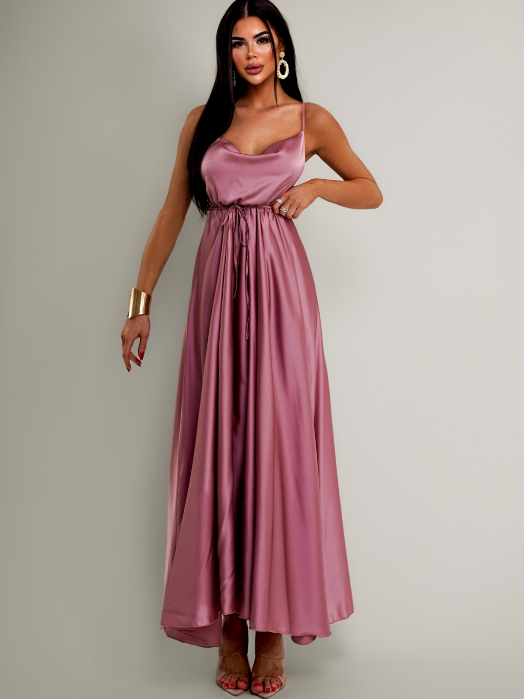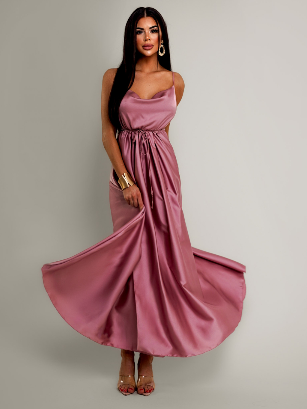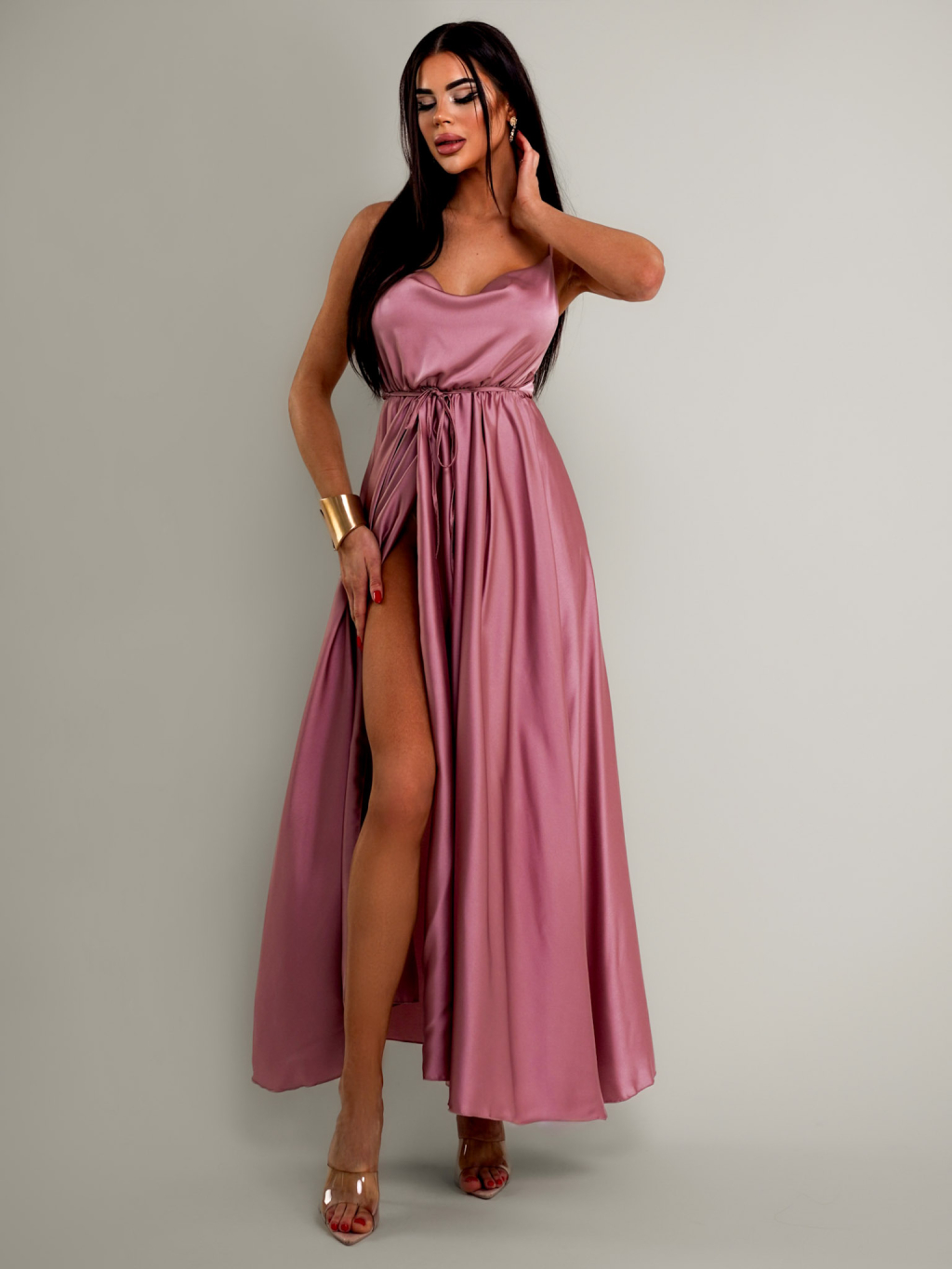 Starorůžové lesklé elegantní šaty YASMINE s rozparkem