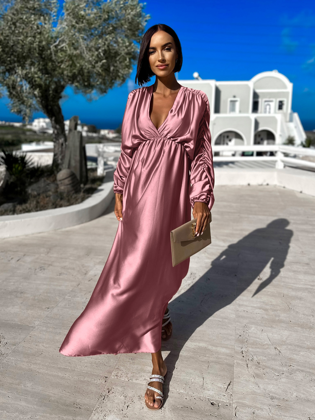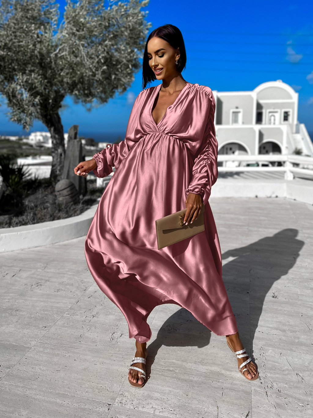 Starorůžové nabírané šaty FAVIE