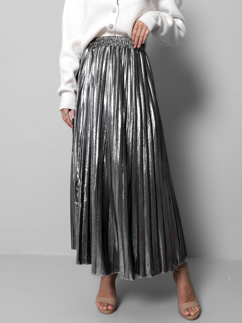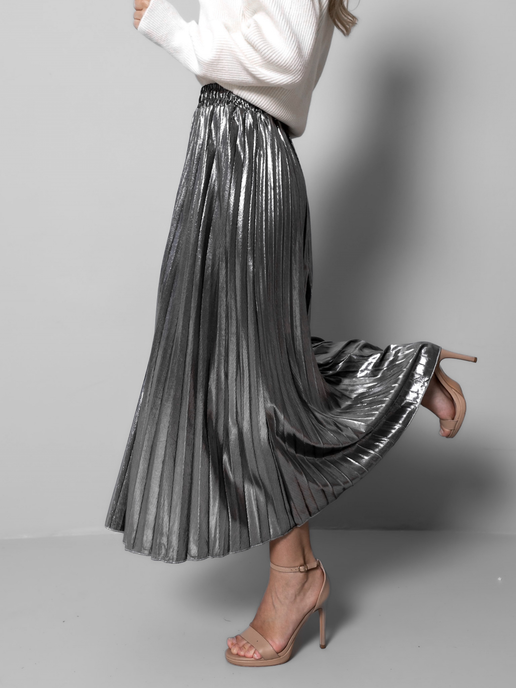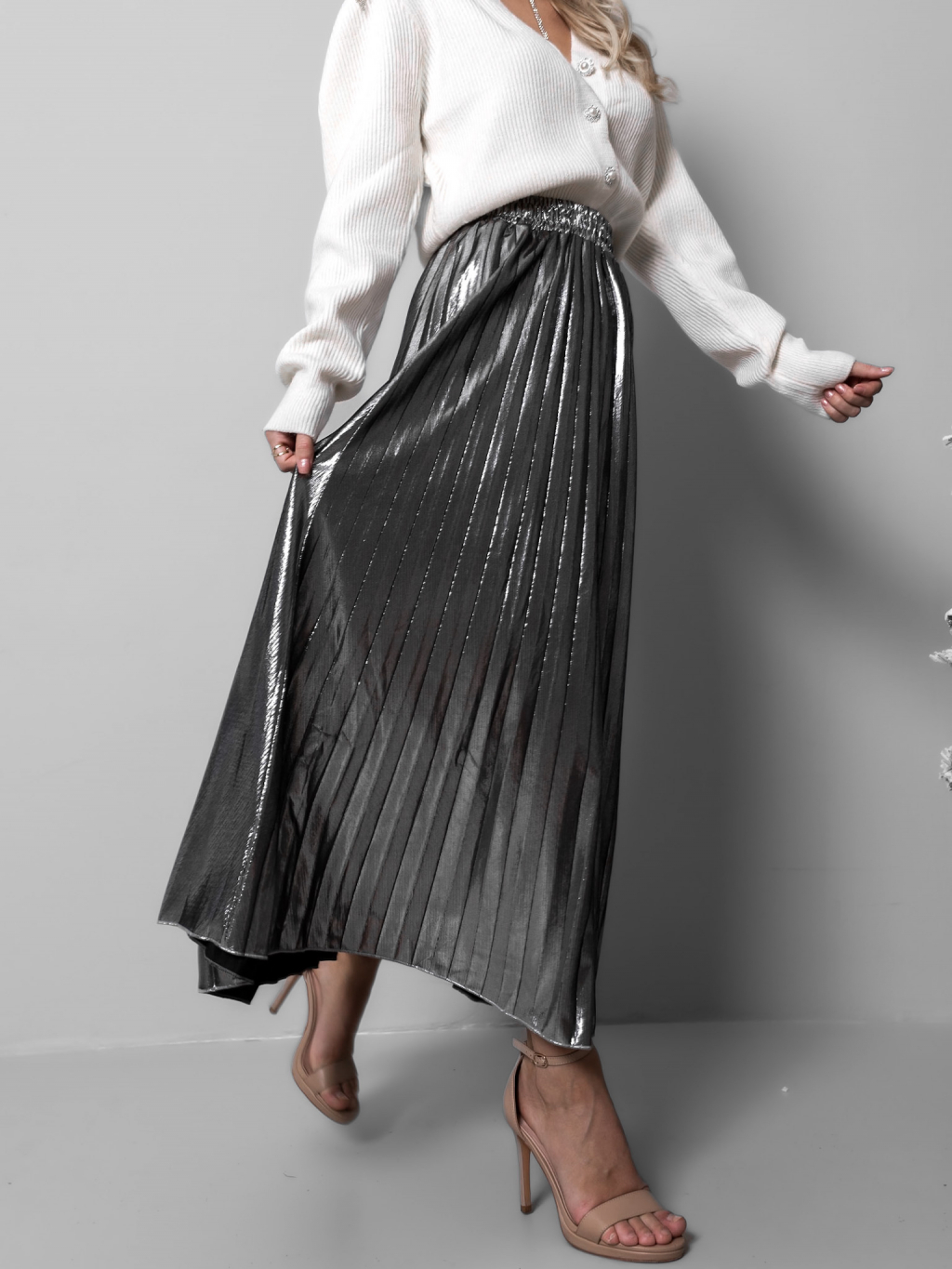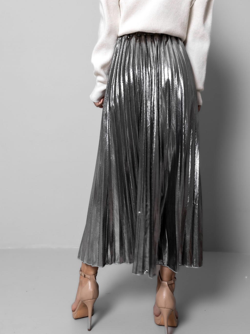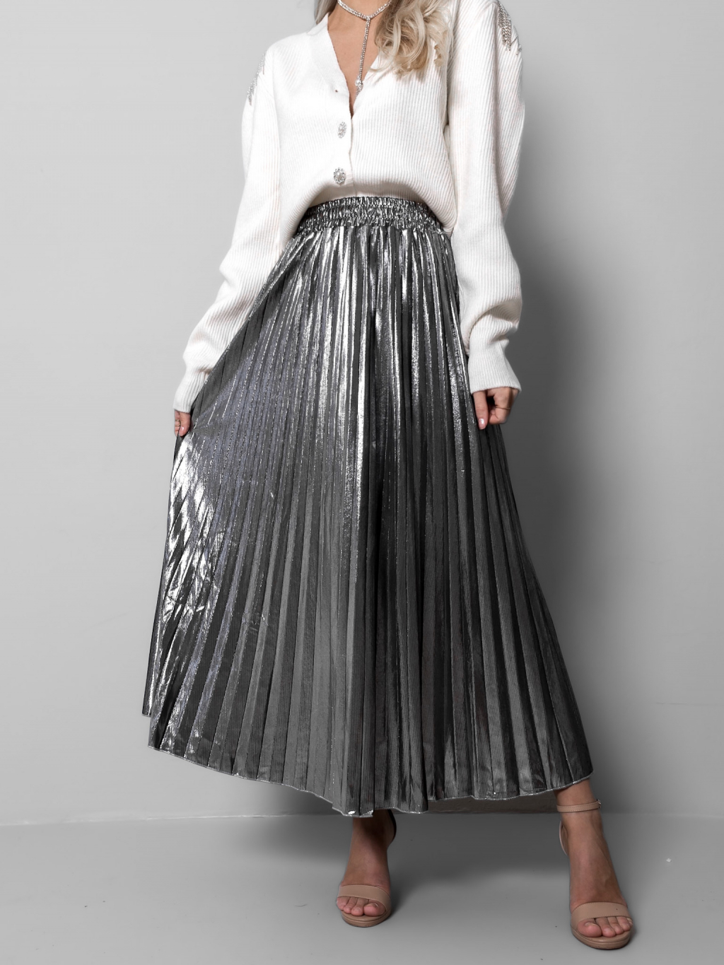 Stříbrná plisovaná metalická sukně SARPEDON