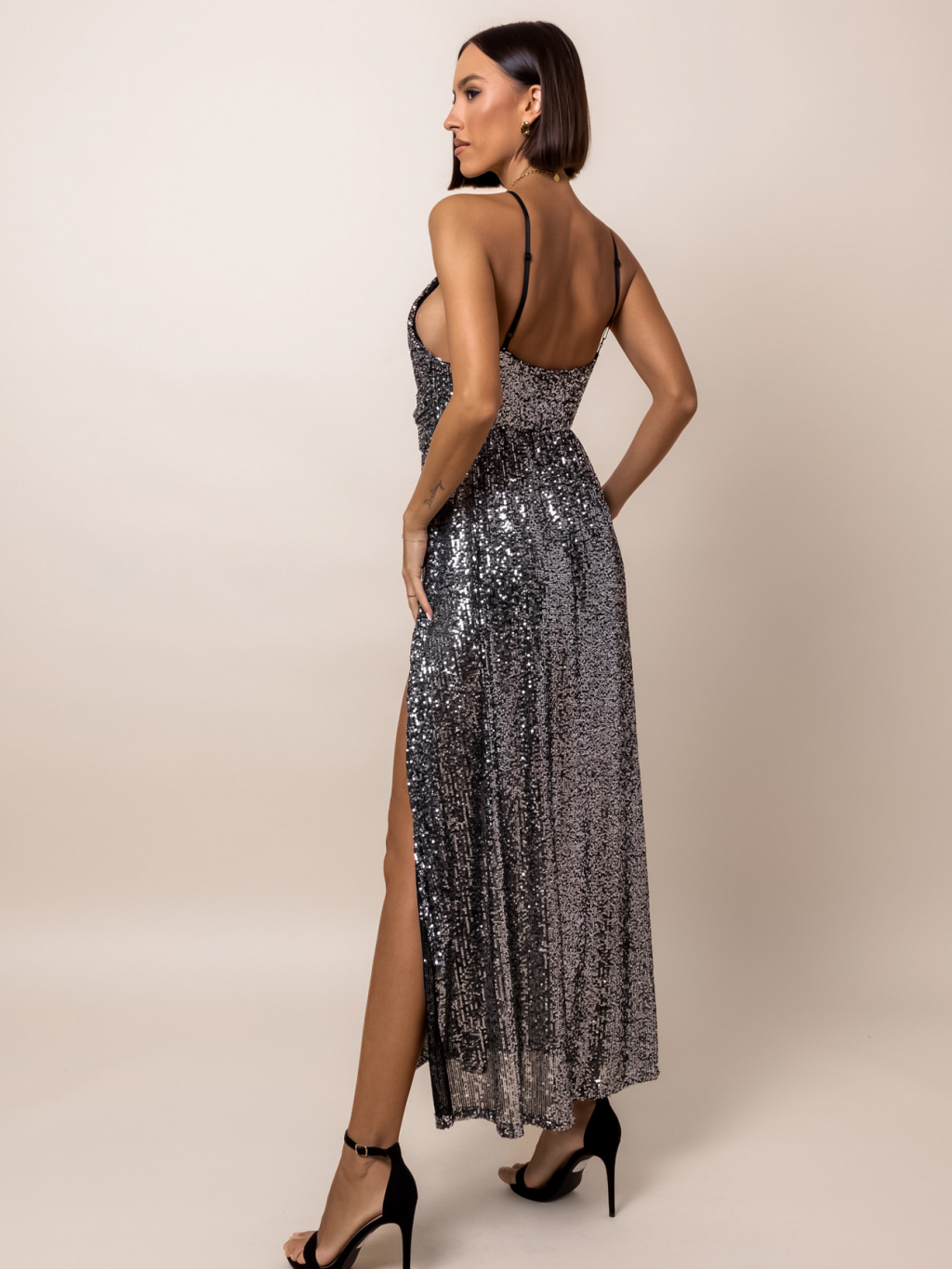 Stříbrné elegantní šaty WONDROUS s flitry