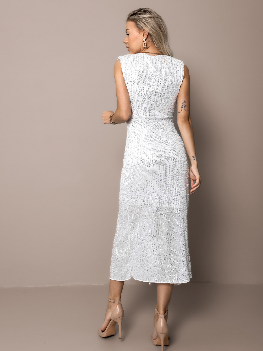 Stříbrné koktejlové šaty CHORILAT s flitry