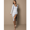 Stříbrné stylové šaty NEMESIL s rozparkem