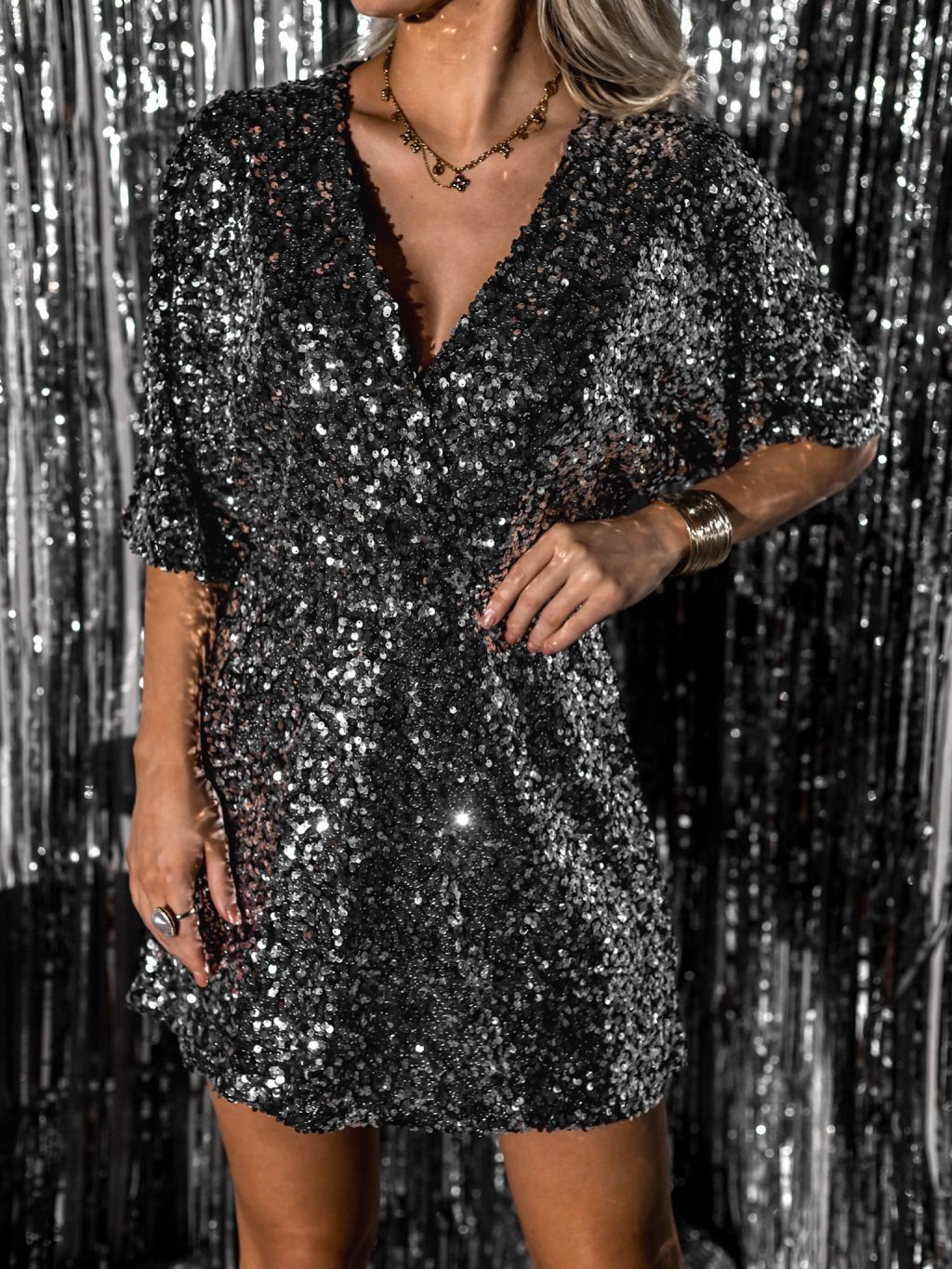 Stříbrné třpytivé šaty/overal TELAMON s flitry