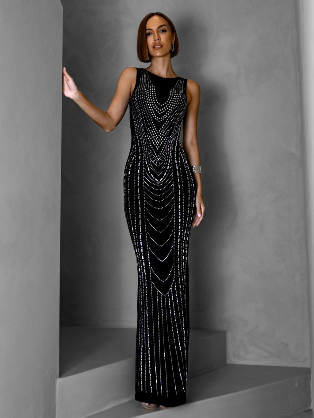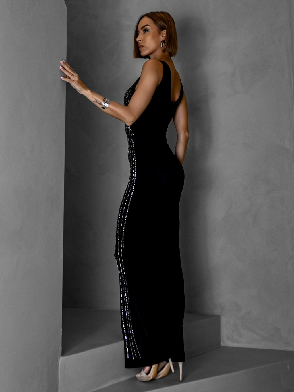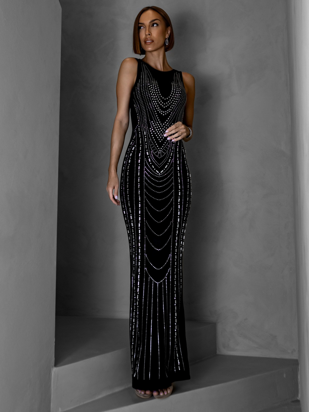 Stříbrnočerné třpytivé dlouhé šaty DARIONE s kamínky