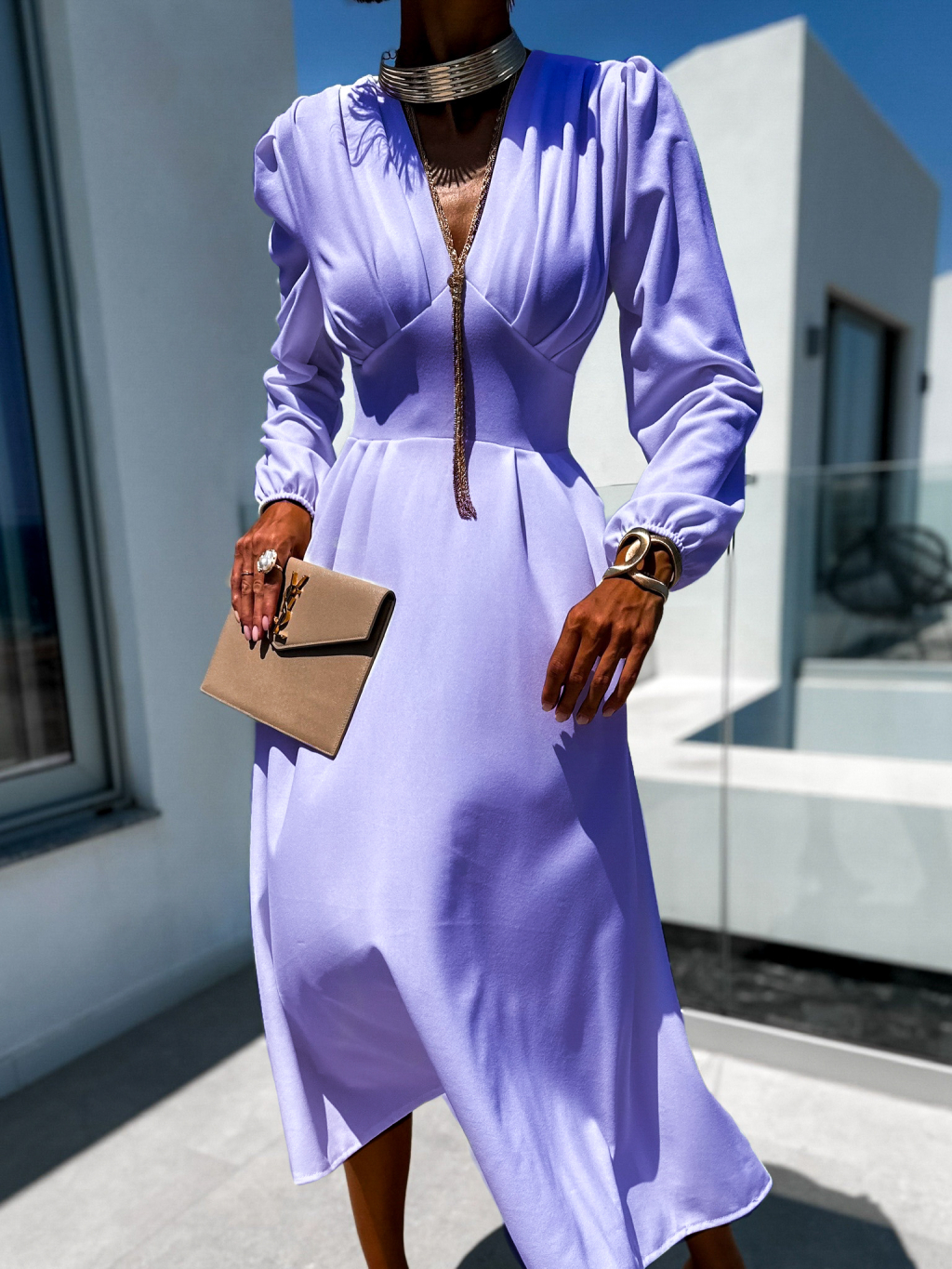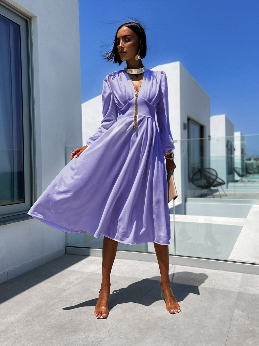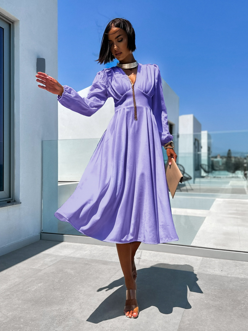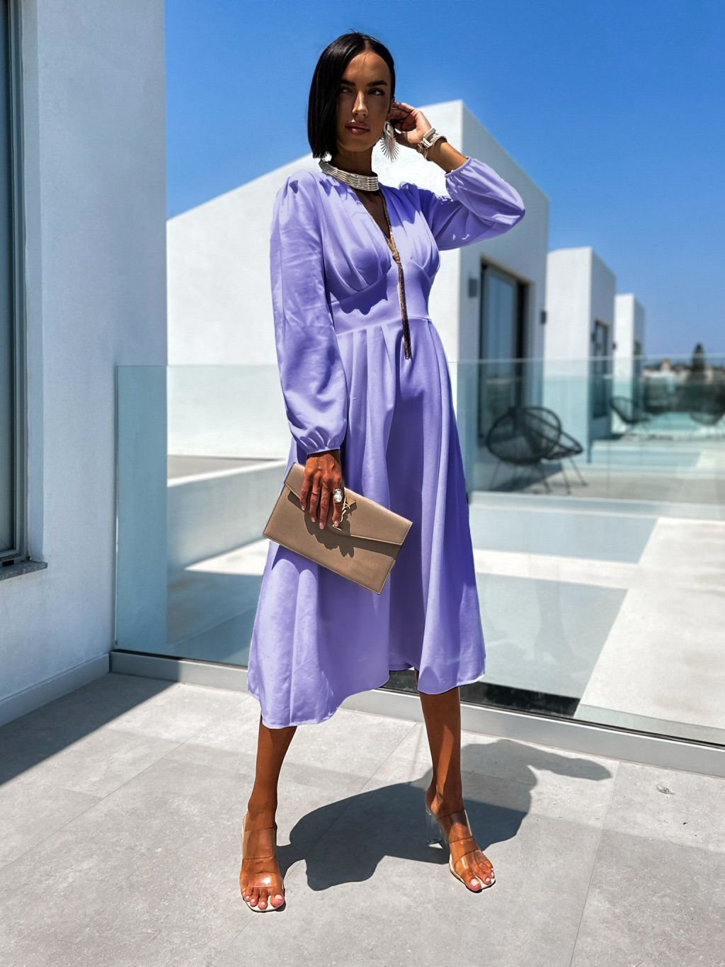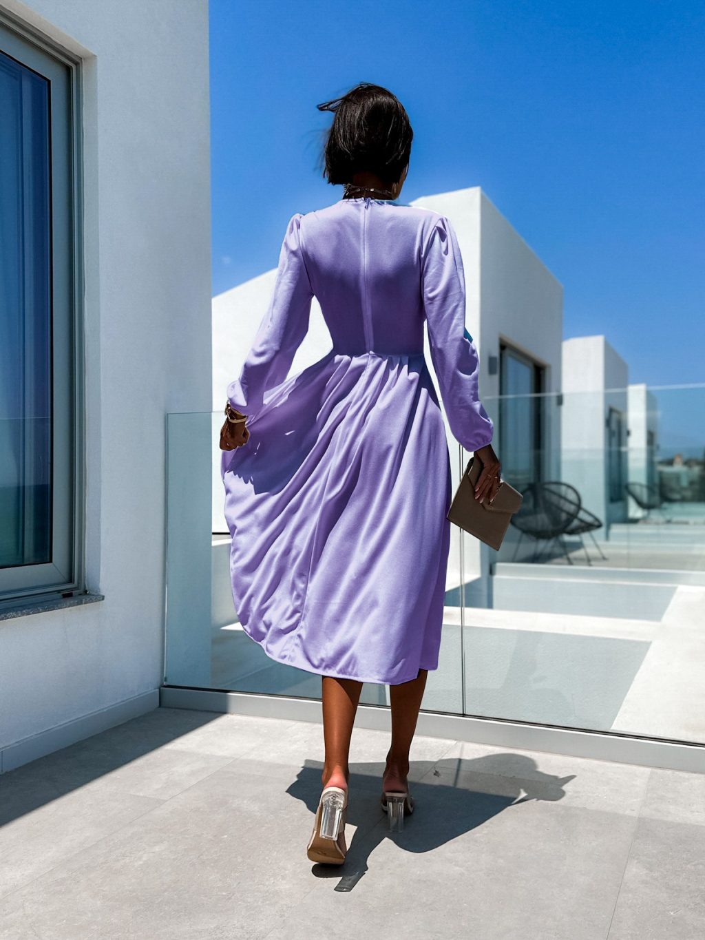 Světle fialové elegantní šaty PHINANEY s dlouhým rukávem