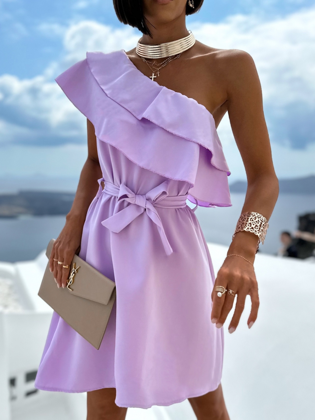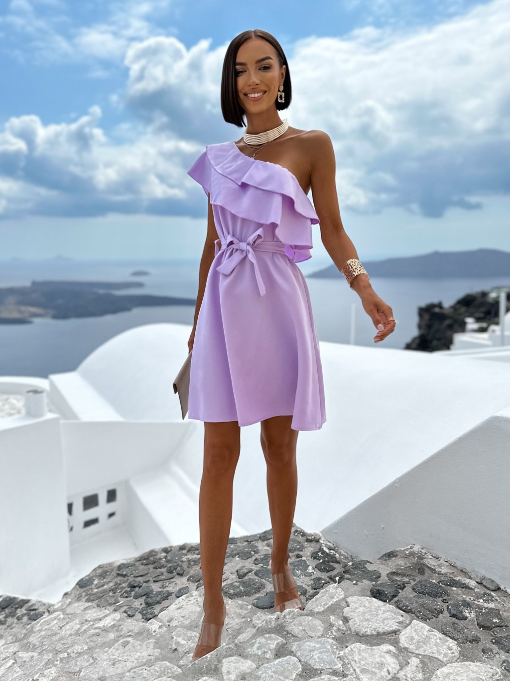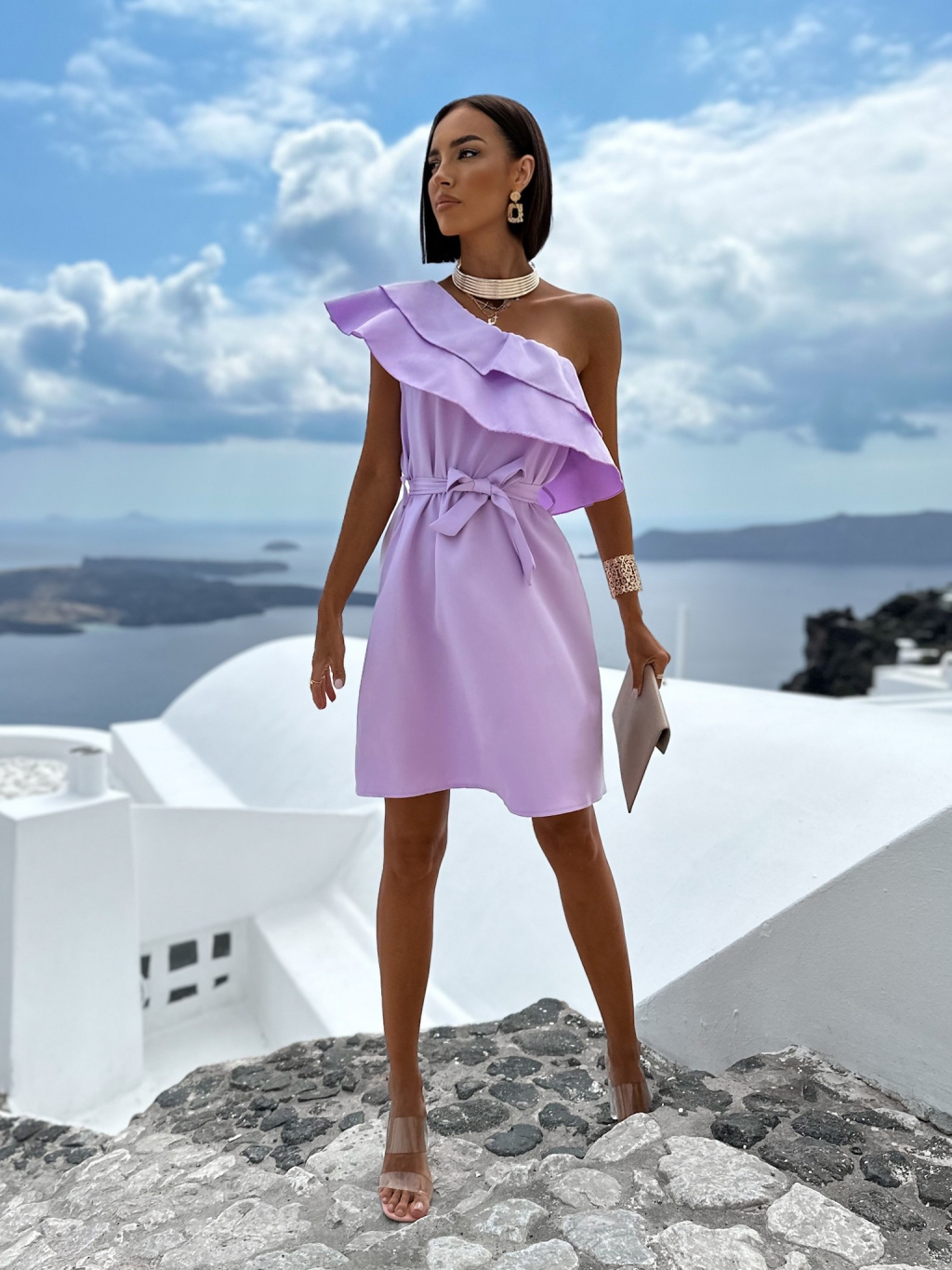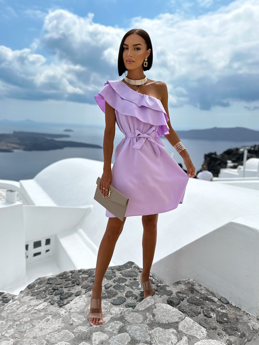 Světle fialové volánkové šaty PURPOSE s vázáním