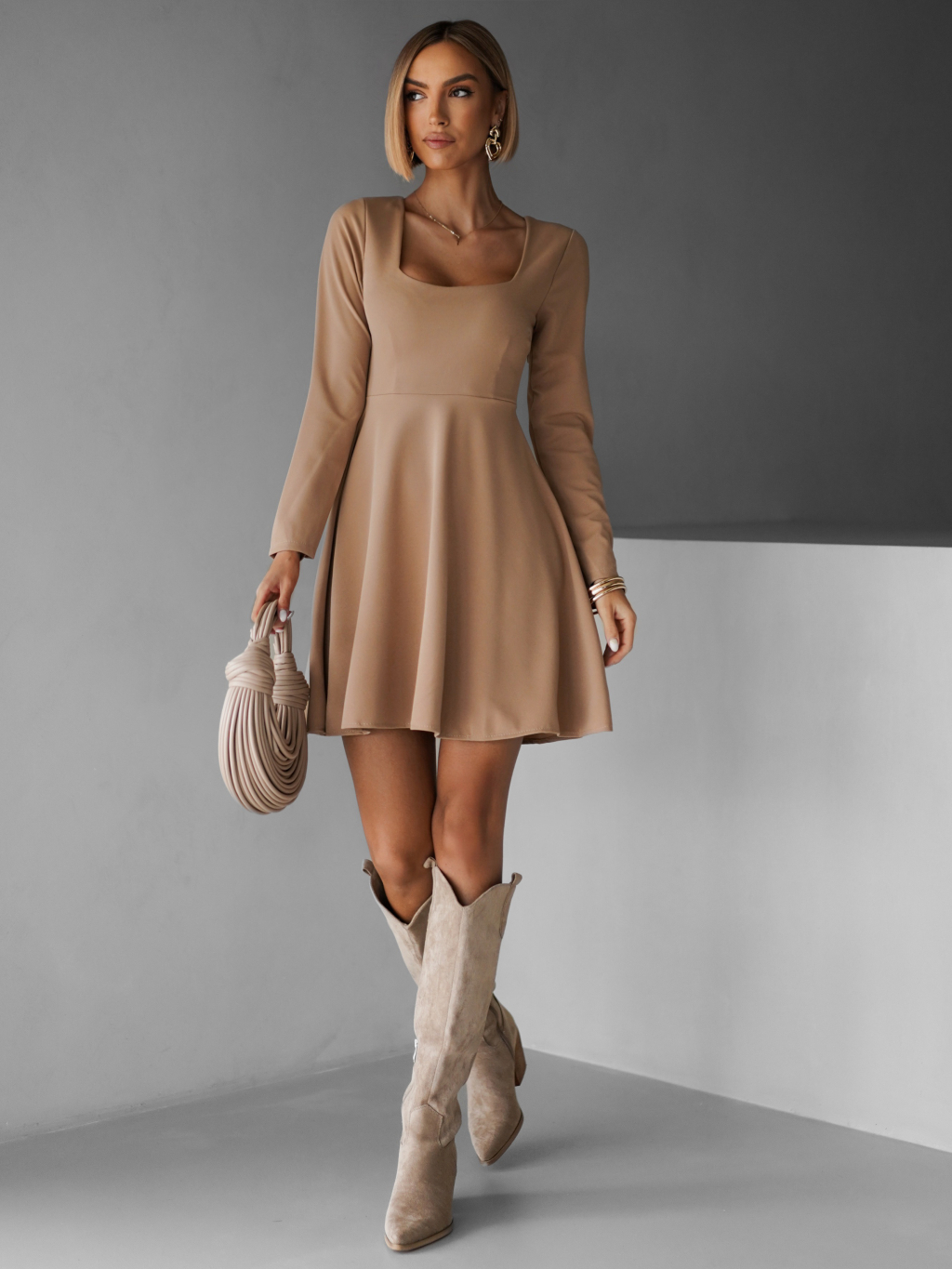 Světle hnědé elegantní šaty BUTTONI jednoduchého střihu