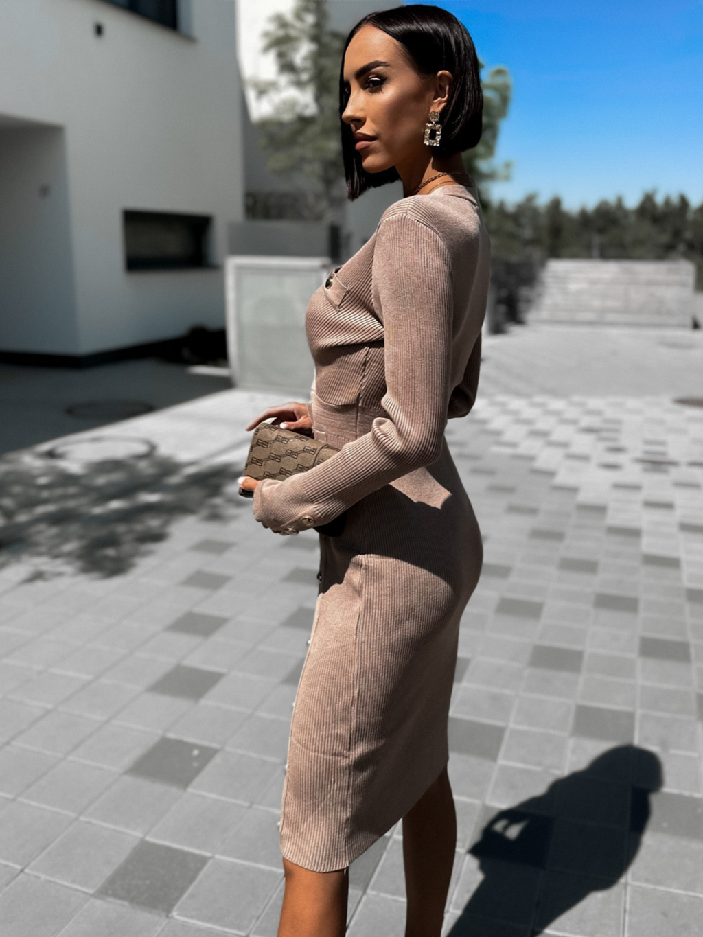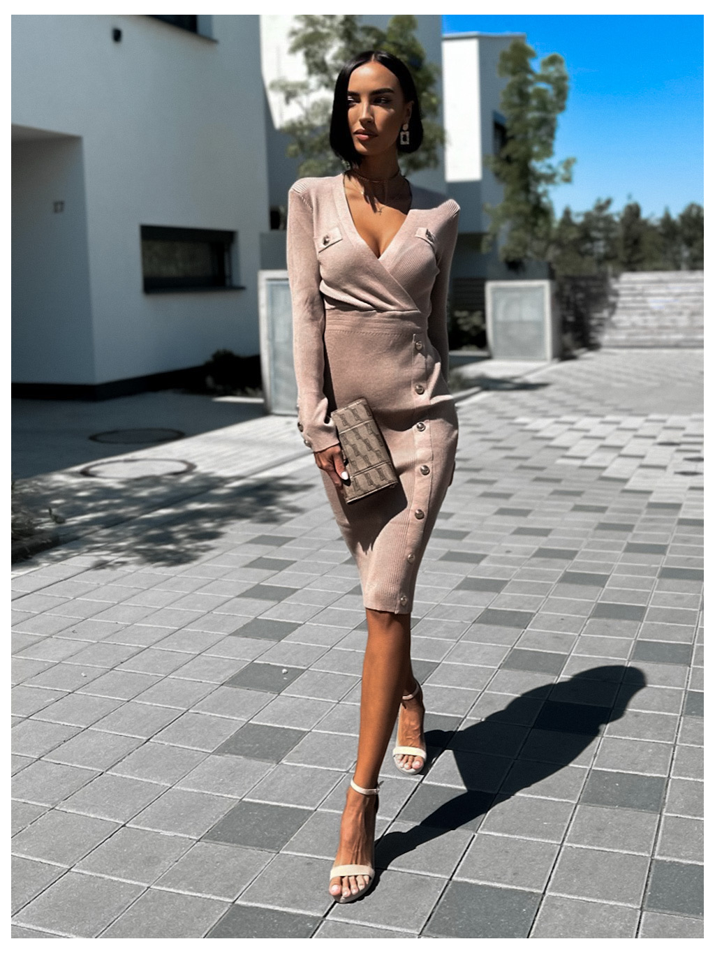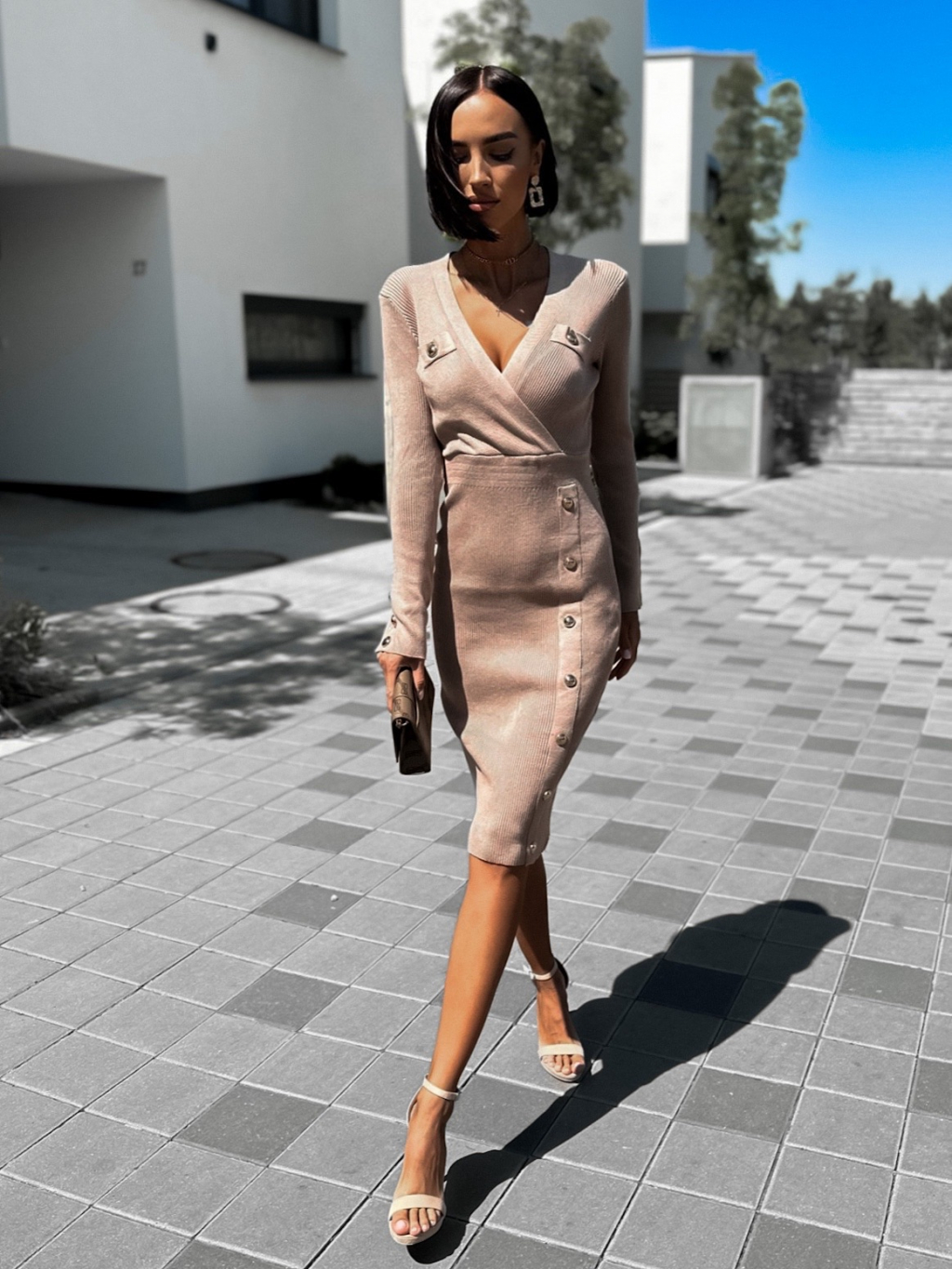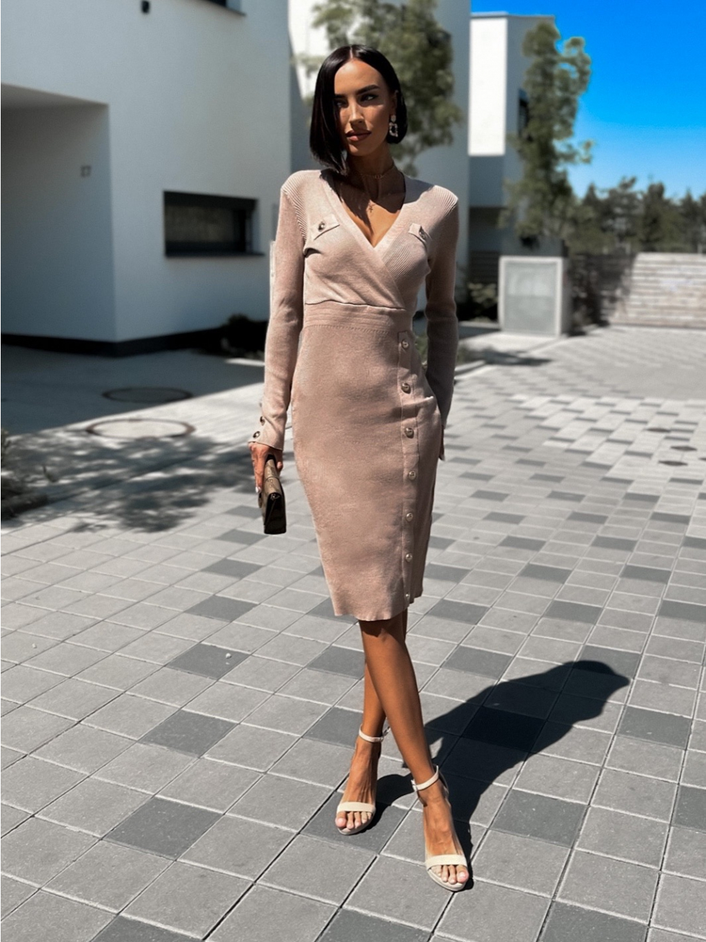 Světle hnědé svetrové šaty RORENIE s knoflíky