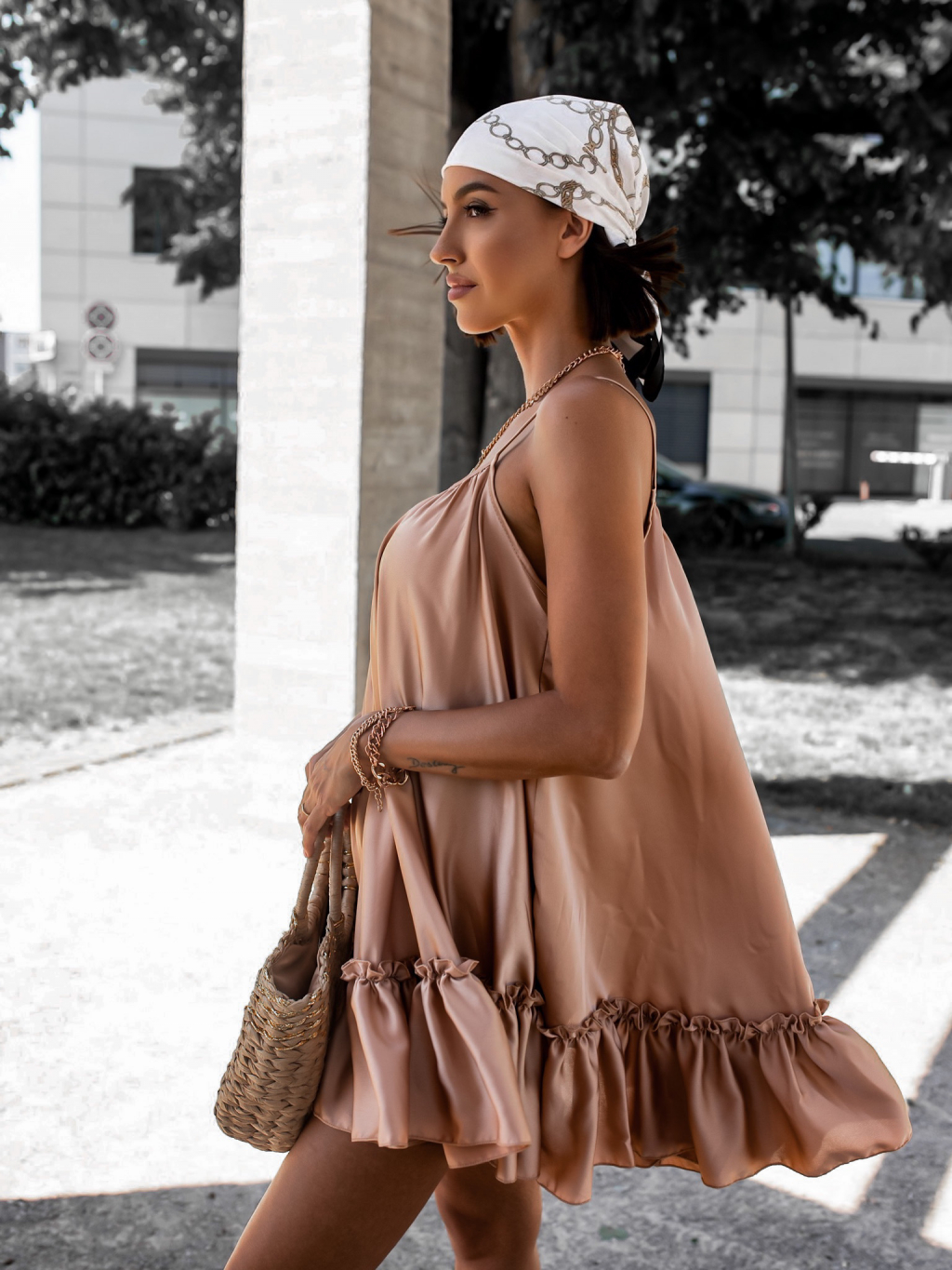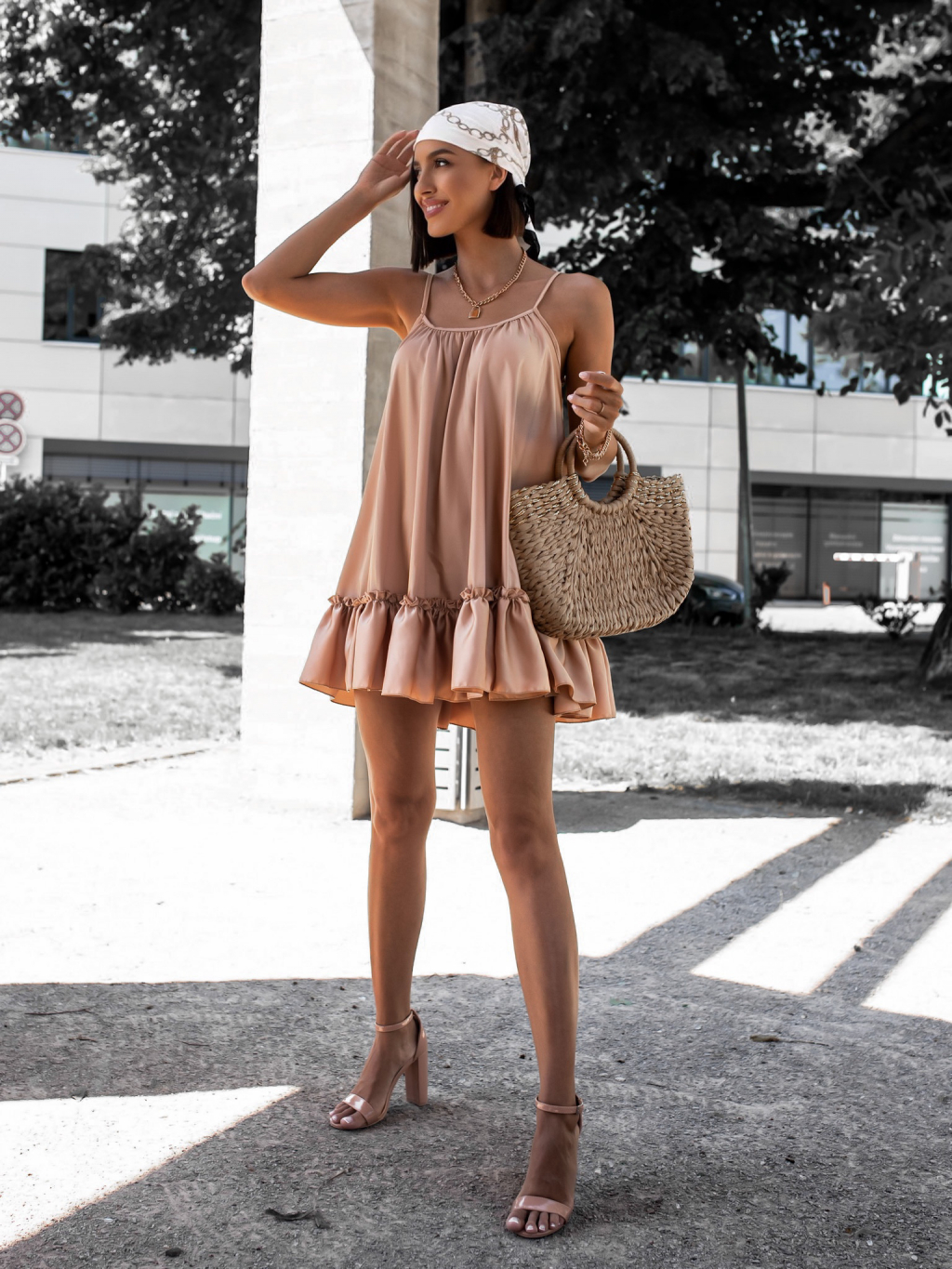 Světle hnědé volánkové šaty GLASSY volného střihu