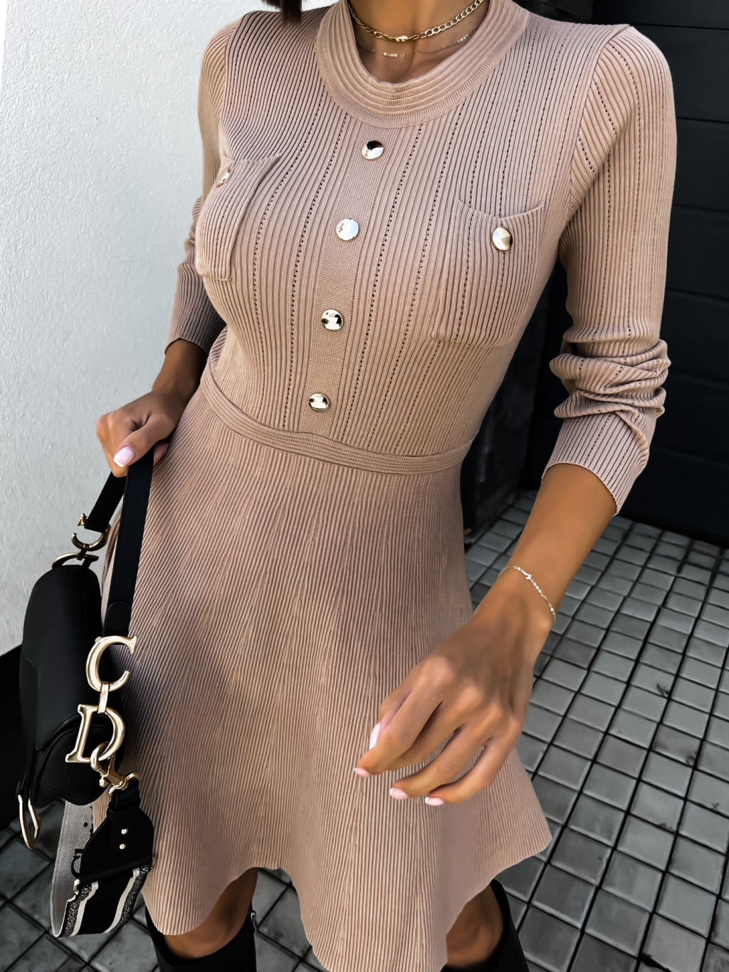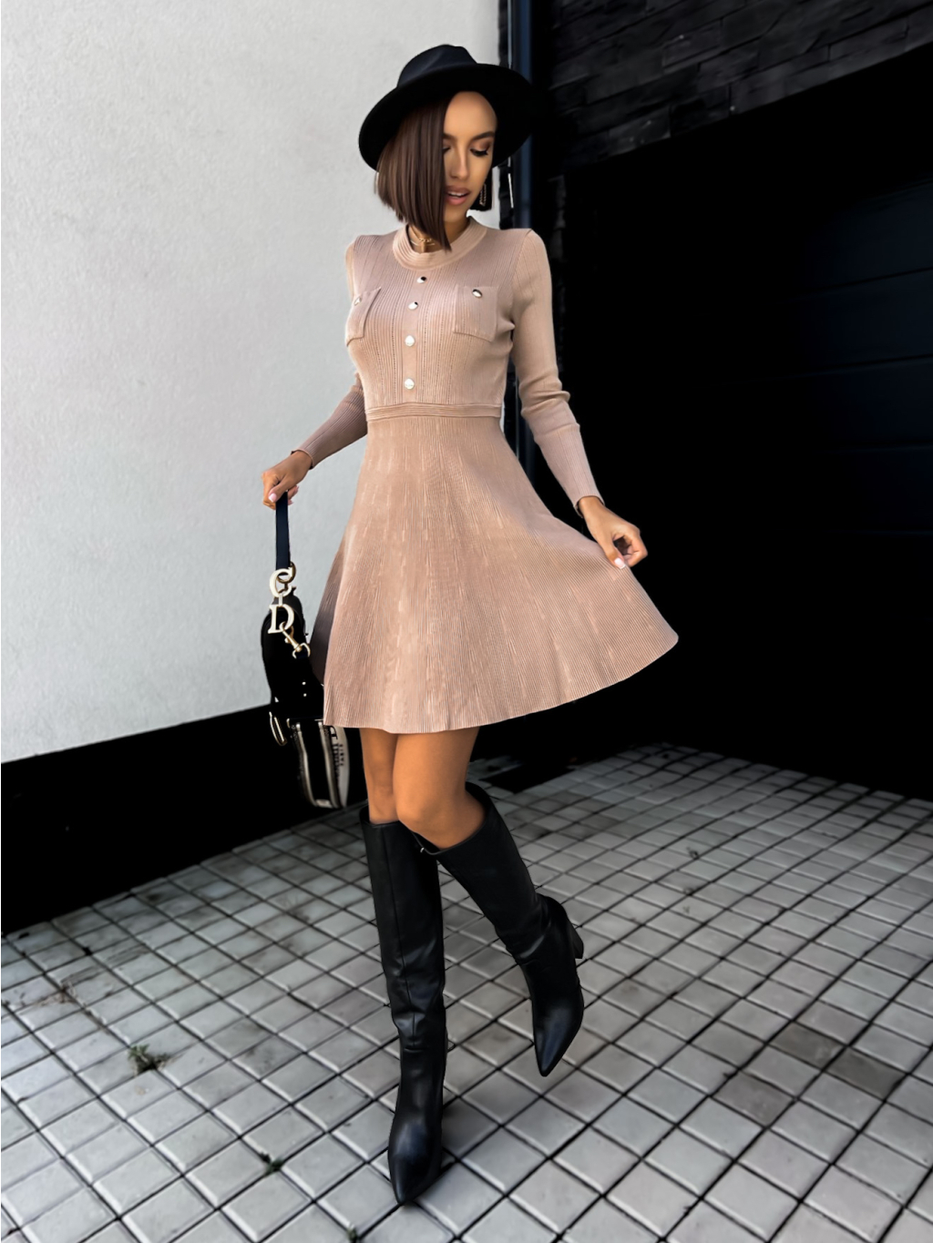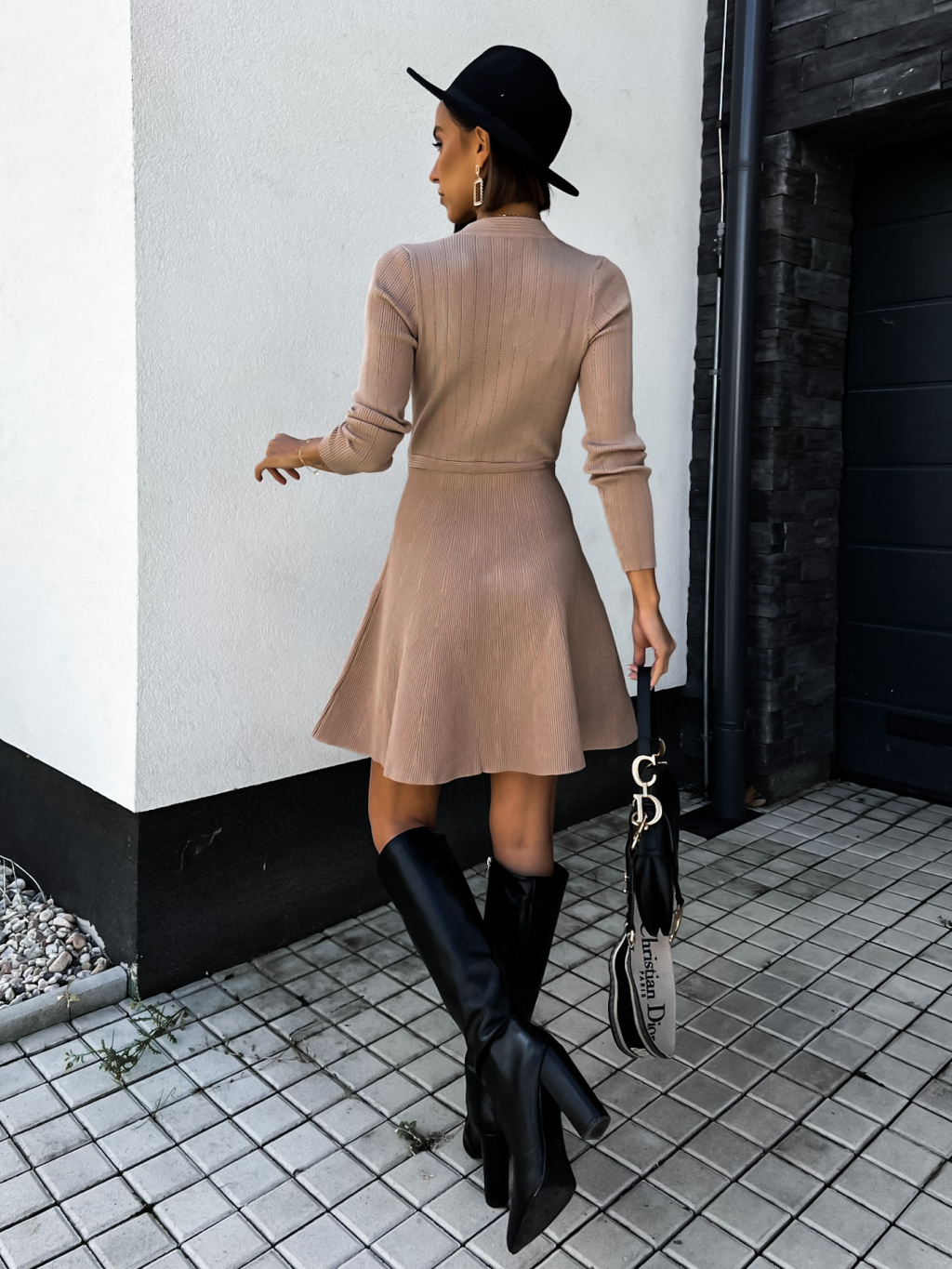 Světle hnědé žebrované šaty WENUSI s dlouhým rukávem