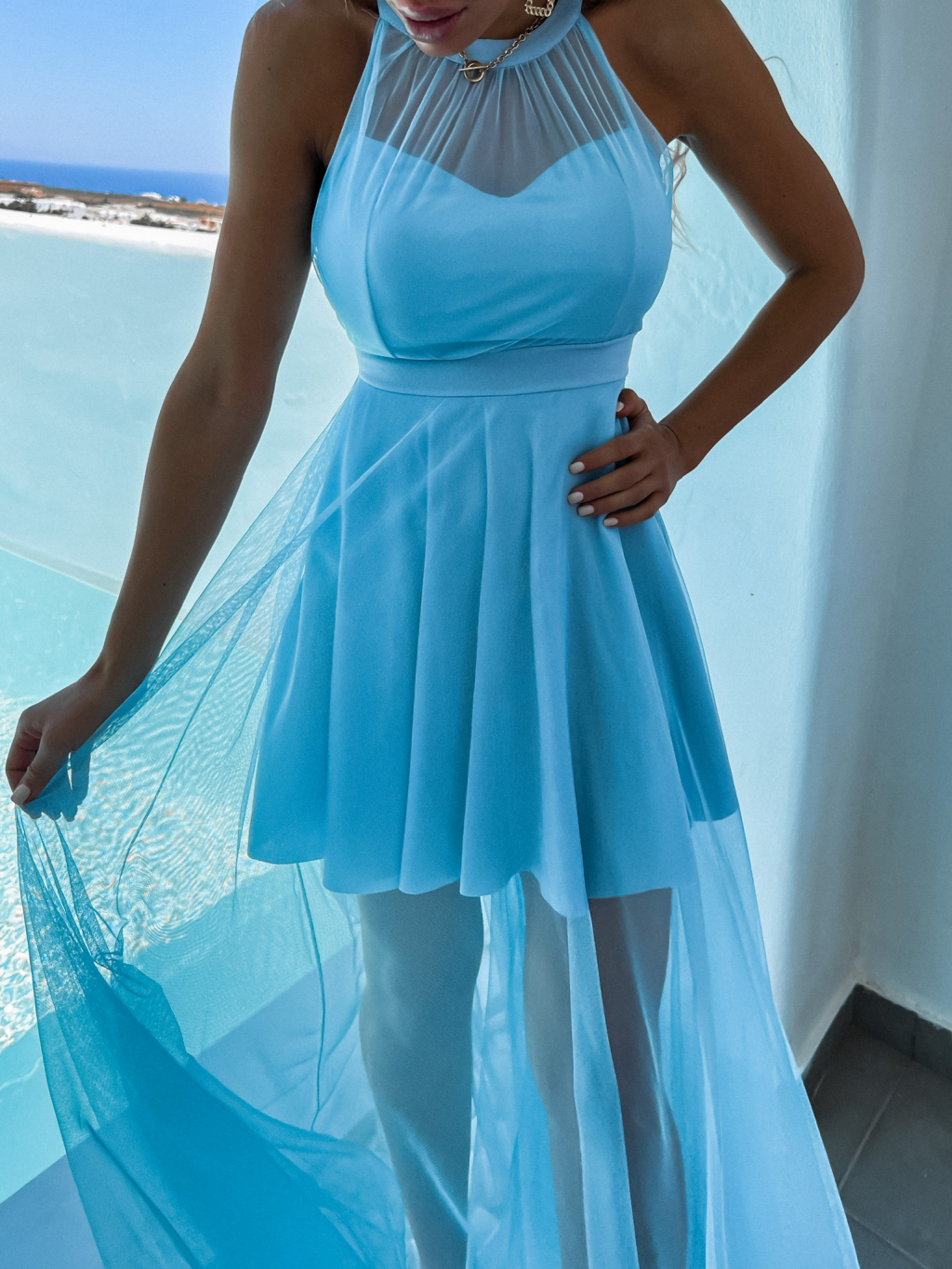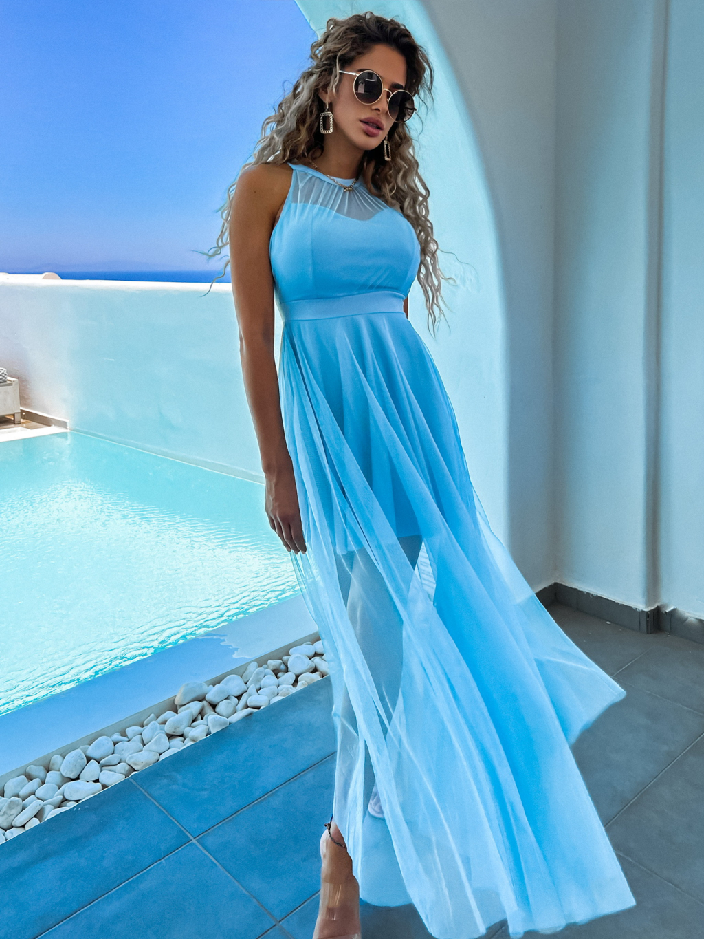 Světle modré dlouhé šaty CINDERELLA s tylovou sukní
